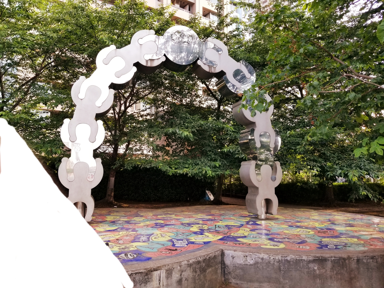 公園の中にはオブジェがあるがあまり大きくはない。多少の違和感はある。