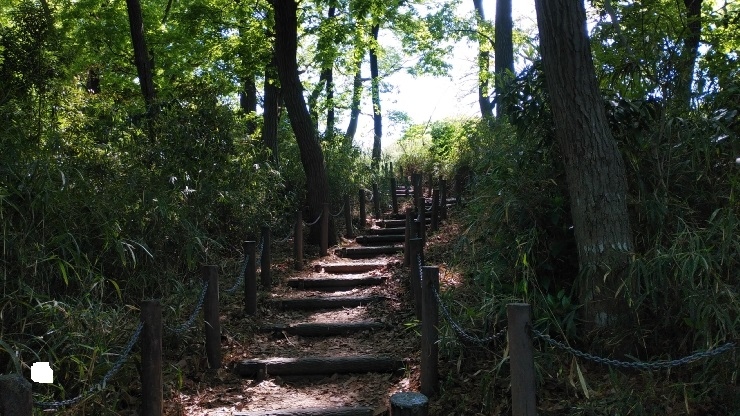 木々に覆われた丘の上に平地が広がっていて、いかにも城があったかのような空間が広がっていた。ただし、築城が1456年で廃城が1590年のため、建物などの遺構は残されていない。土塁や堀などは残っているようで、見る人が見ればわかるのかも。
