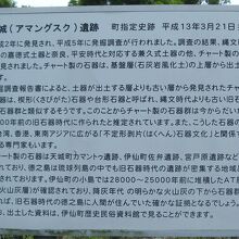 県道83号線、伊仙町流れる阿権川に架かる“島権大橋”の西の袂の海側に「アマングスク」があります。説明板によると縄文時代後期の石器や土器などが発見されたところだとか。柵に囲まれた草地に岩が数個あるだけで遺跡らしい感じは全くなく、説明板が無ければ判らないようなところでした。出土した石器や土器は伊仙町歴史民俗資料館で見ることができるそうです。