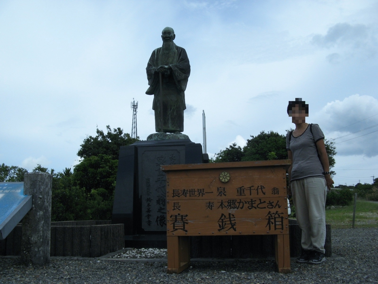 昭和51年に長寿日本一となり、一時期世界最高齢の人物としてギネス世界記録に認定されていた泉重千代さんの長寿を讃えて建立された銅像。実際の年齢はよく判らず、ウィキペディア見ると享年120歳?または105歳となっています。105歳としてもすごいですが、何故、15歳も違うのか不思議に思いました。銅像の前には泉重千代さんと同じ伊仙町で生まれ世界最高齢の女性本郷かまとさんの名前が描かれた賽銭箱がありお二人は神様仏様として崇められているようでした。