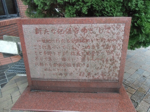 会館脇の「新たな価値をめざして」という石碑の日付から、創設は昭和56年。