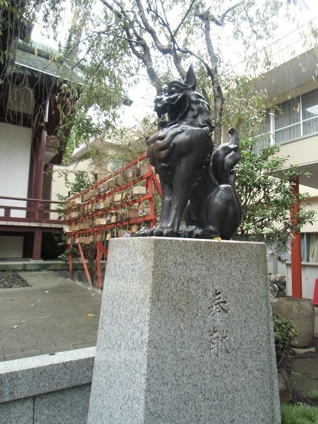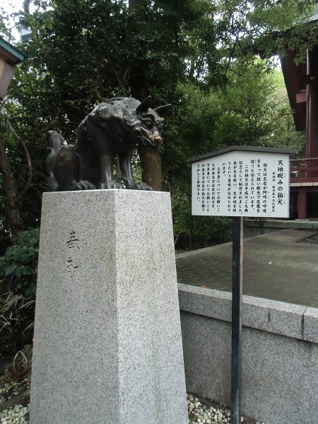 拝殿前の狛犬は「天地睨みの狛犬」と名付けられた像で、襲ってきそうな迫力があります。