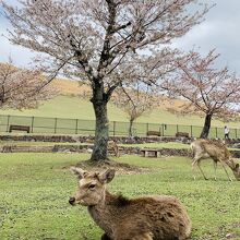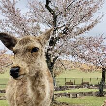 シカ と 桜 と 【 若草山 】の良いお写真が撮れました。