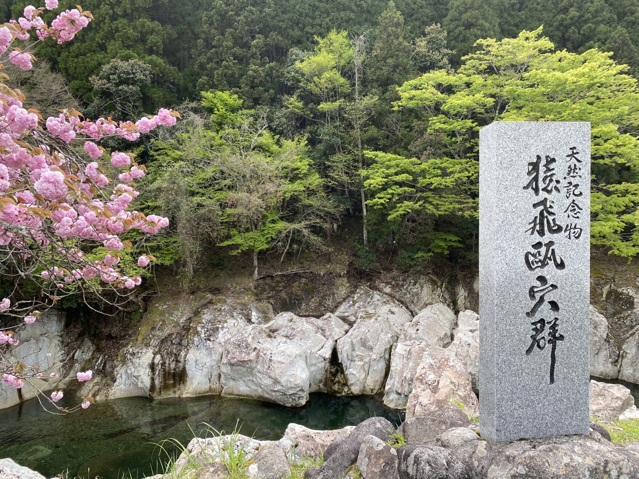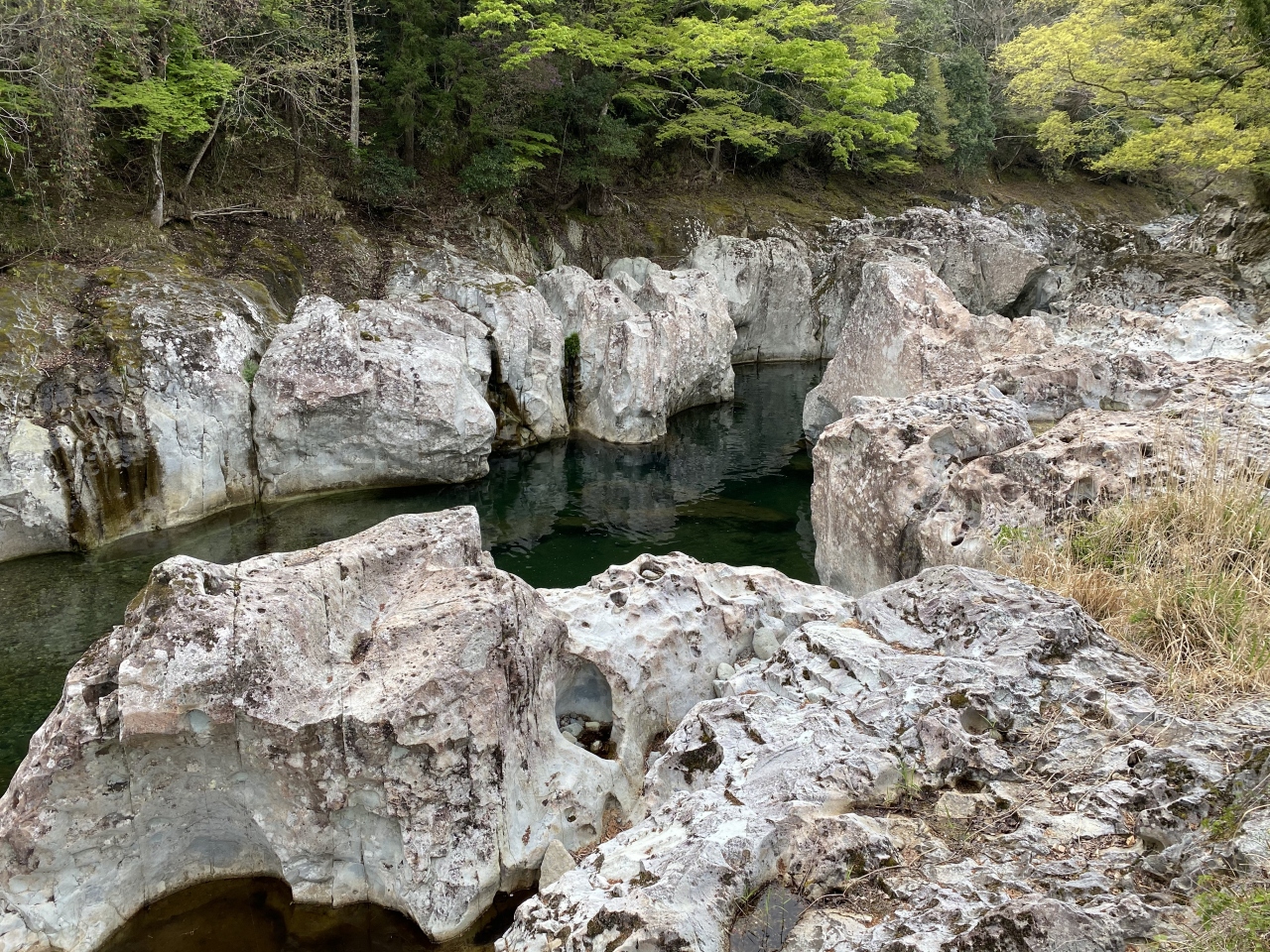 説明板を読むと、そもそもは千万年以上前は海だったことが始まりで、岩石の中に含まれていた礫が回転して甌穴になることがわかりました。流れている石が回転するのかと思っていました。様々な条件が重なった上での奇跡の風景に感謝でした。