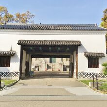 天王寺公園内、大阪市立美術館南側に建っています。元々は現在の中之島付近にありましたが、1933年に三井ビルの建設に際し三井社から大阪市に寄贈、移築されました。江戸時代中期の蔵屋敷の遺構をもつ数少ない物の一つで、大阪府有形文化財に登録されています。美術館や慶択園へ行く際に通る、立派で風格ある門です。