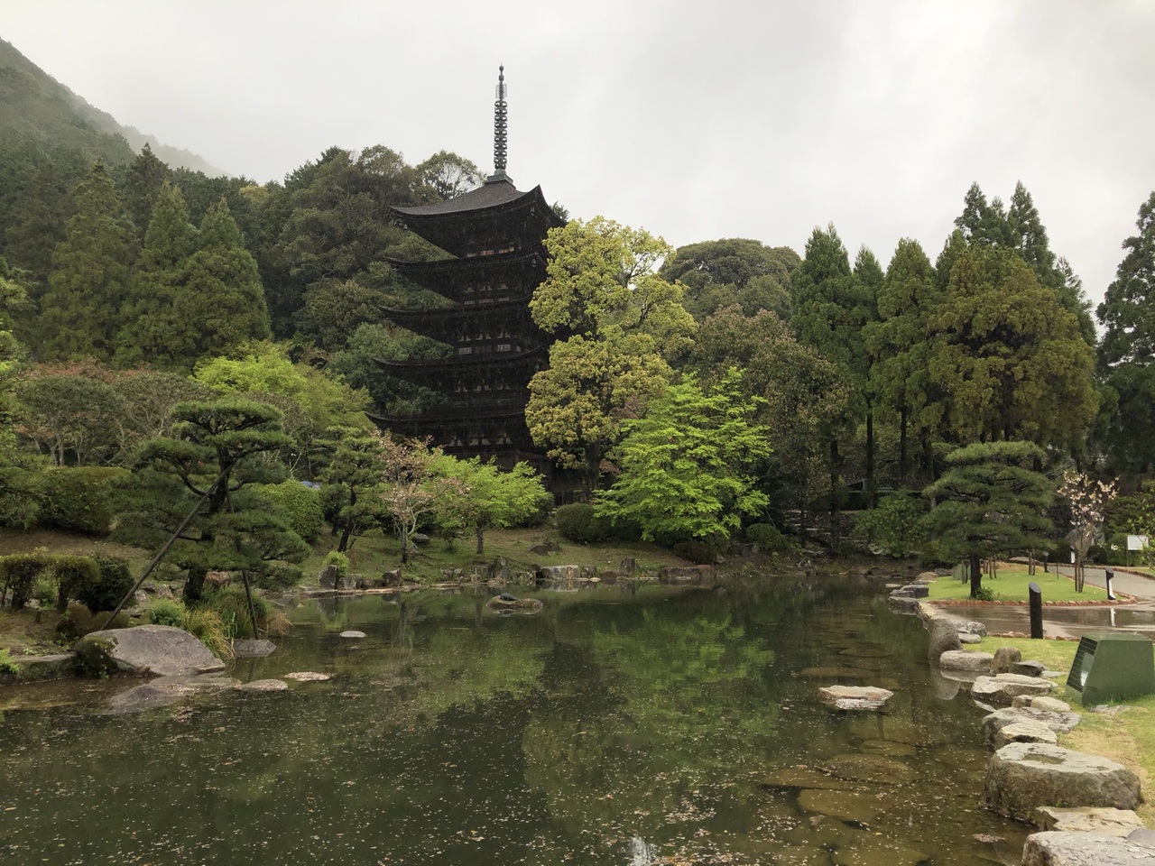 訪れた日が大雨で太陽光がなかなか差さなかったため、写真を撮っても暗かったのですが、それでも雰囲気を醸し出す五重塔には感じ入りました。