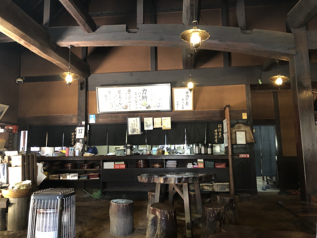 旧東海道の元箱根と畑宿の真ん中に位置する場所に、この甘酒茶屋があります。甘酒は疲労回復に効果があるため、甘酒茶屋は、箱根の山道を行き来する旅人で賑わっていたということです。