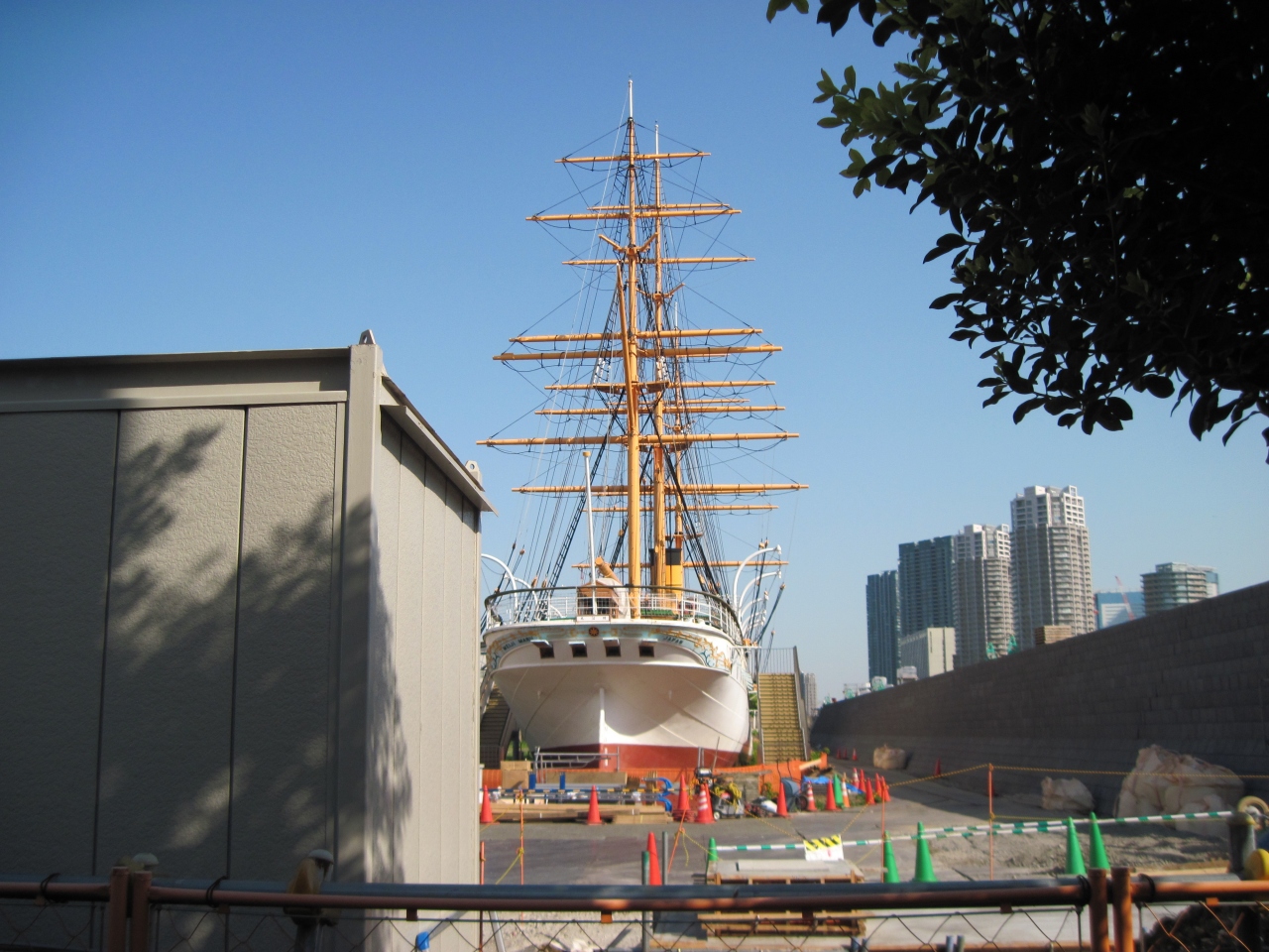 東京海洋大学敷地内に展示してあります。ちょうど周辺含めて工事で整備中だったので、ちょっと残念でした。それでも優雅でロアンあふれる帆船の姿は素敵でした。実際に帆を上げて海の上を航海している様子が想像できて楽しかったです。