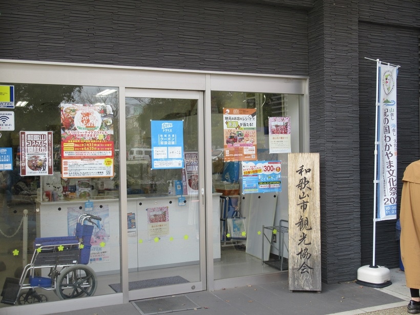 少々狭い案内所ですがお城のや市街地のマップや見どころの情報は得ることができますよ。アクセスは和歌山駅よりちょっと遠いので路線バスで「市役所前」下車、お車の場合は広ーい駐車場がありますのでご利用くださいね。