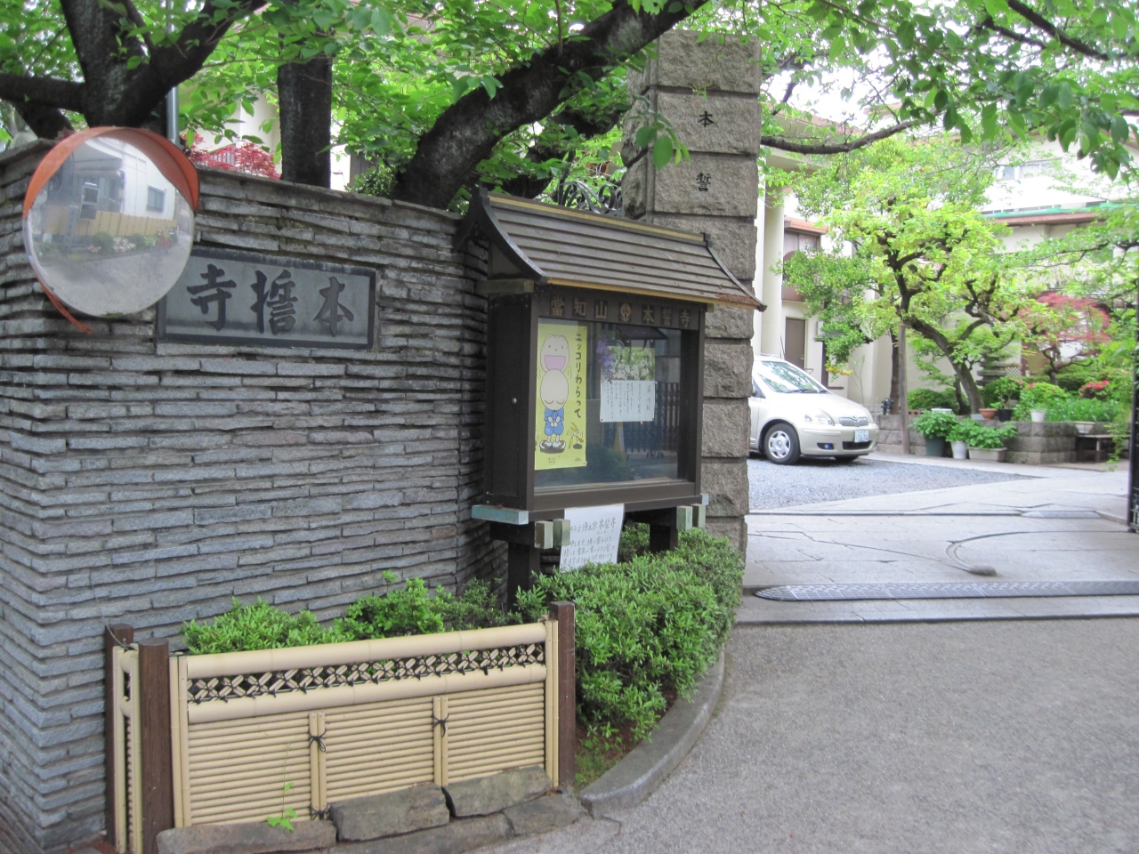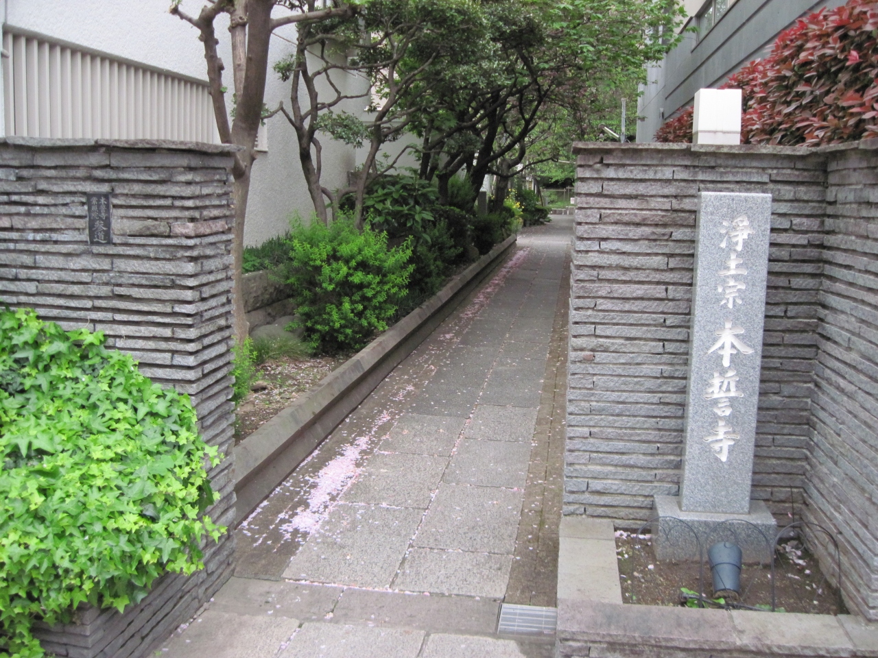 清澄庭園の近くを散歩していて見つけたので、境内に入ってみました。浄土宗のお寺で、江戸時代には有名だった国学者・村田華海や医者の呂一官が眠っているお寺らしく、境内には碑と案内板が立てられています。コンクリート造で立派な柱の本堂でした。