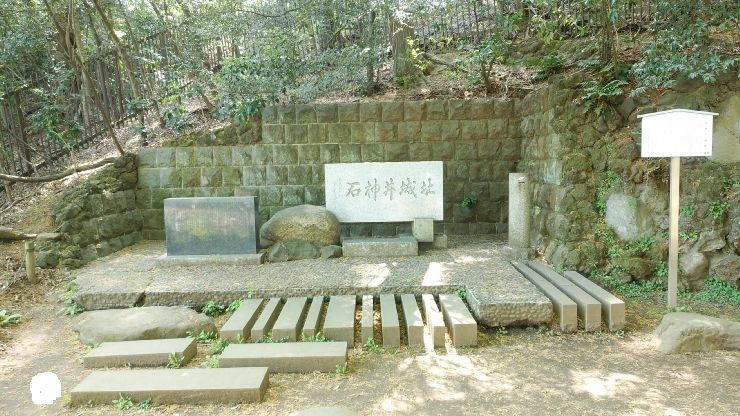石神井城があったとされる小高い丘のふもとにある石碑。三宝寺池遊歩道の植物群落の石碑がある通りを高台の方に向かって進むと、麓の脇に設置してあった。
