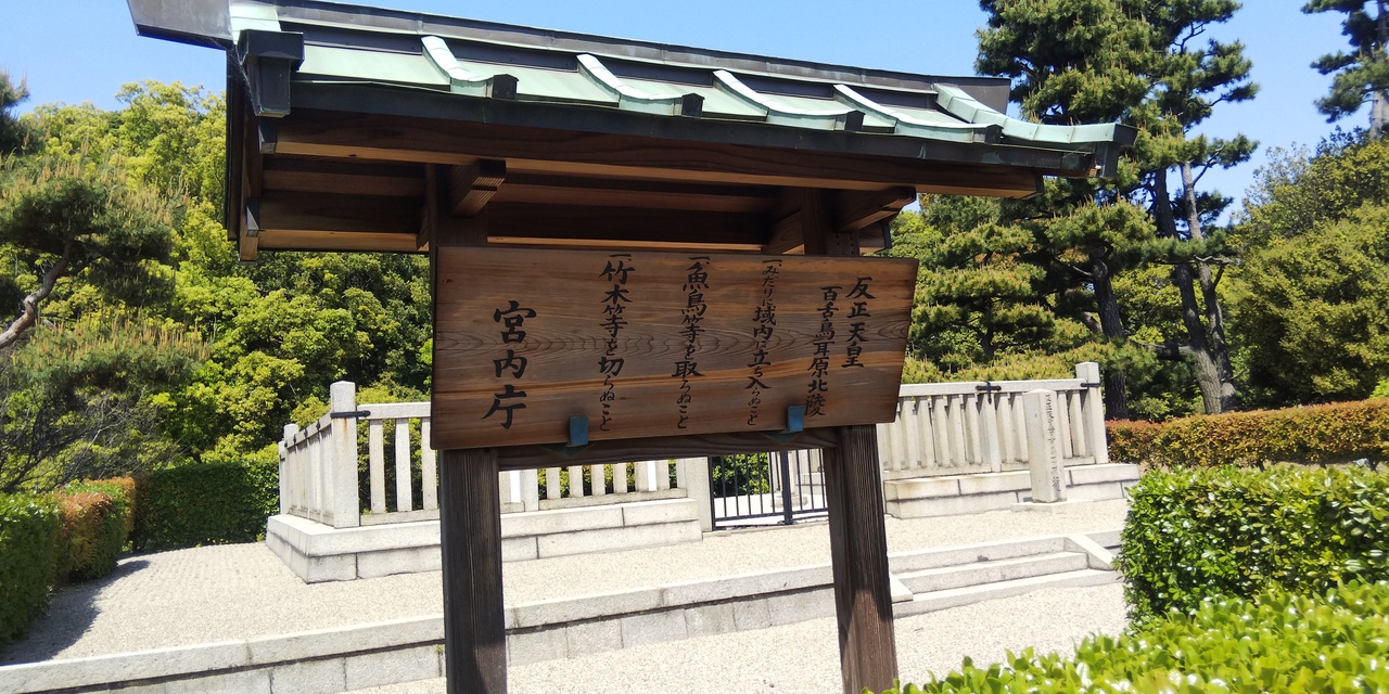 反正天皇陵古墳(田出井山古墳)は世界文化遺産の「百舌鳥・古市の古墳群」の百舌鳥側の北端にある古墳です。天皇陵だけに拝所やお堀もあるなかなか大きな古墳です。南海電鉄高野線の堺東駅から歩いたら5分ぐらいのところにあります。曲がり角毎に道標的なものがあるので、わかりやすいと思います。