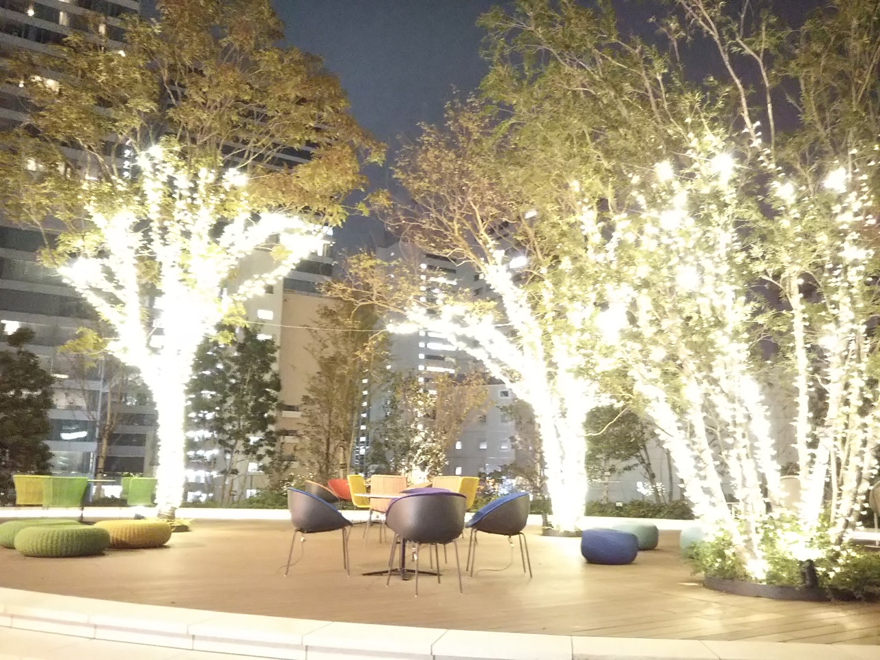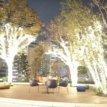 テラスになっている部分が広々としていて テーブルセットも今っぽい雰囲気です。飲食店も多く入っていました。