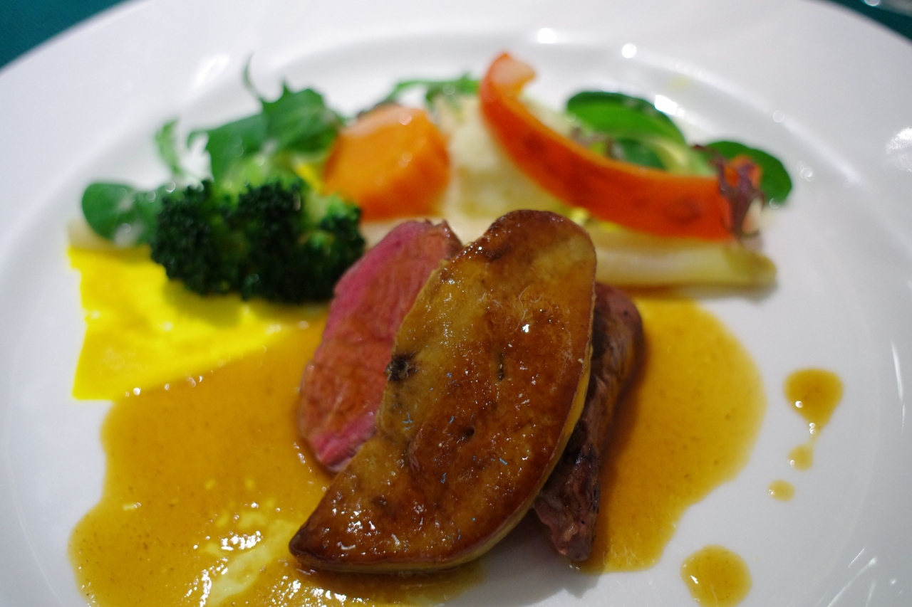 夕食、フレンチのコース。大満足。メインの魚、肉とも美味。肉の柔らかさはこれまでの経験で一番。あとフォアグラの美味さもこれまでで一番。