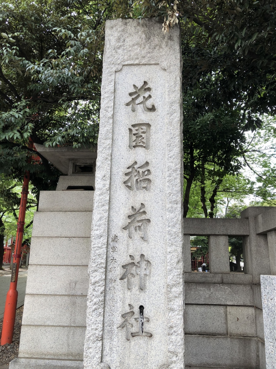 花園稲荷神社と書かれた社号標があり、それは海軍大将加藤寛治の書でした。