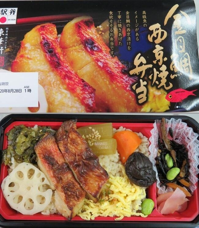 金目鯛西京焼弁当を買って帰りの東海道線2階建てグリーン車内で昼食にしました。