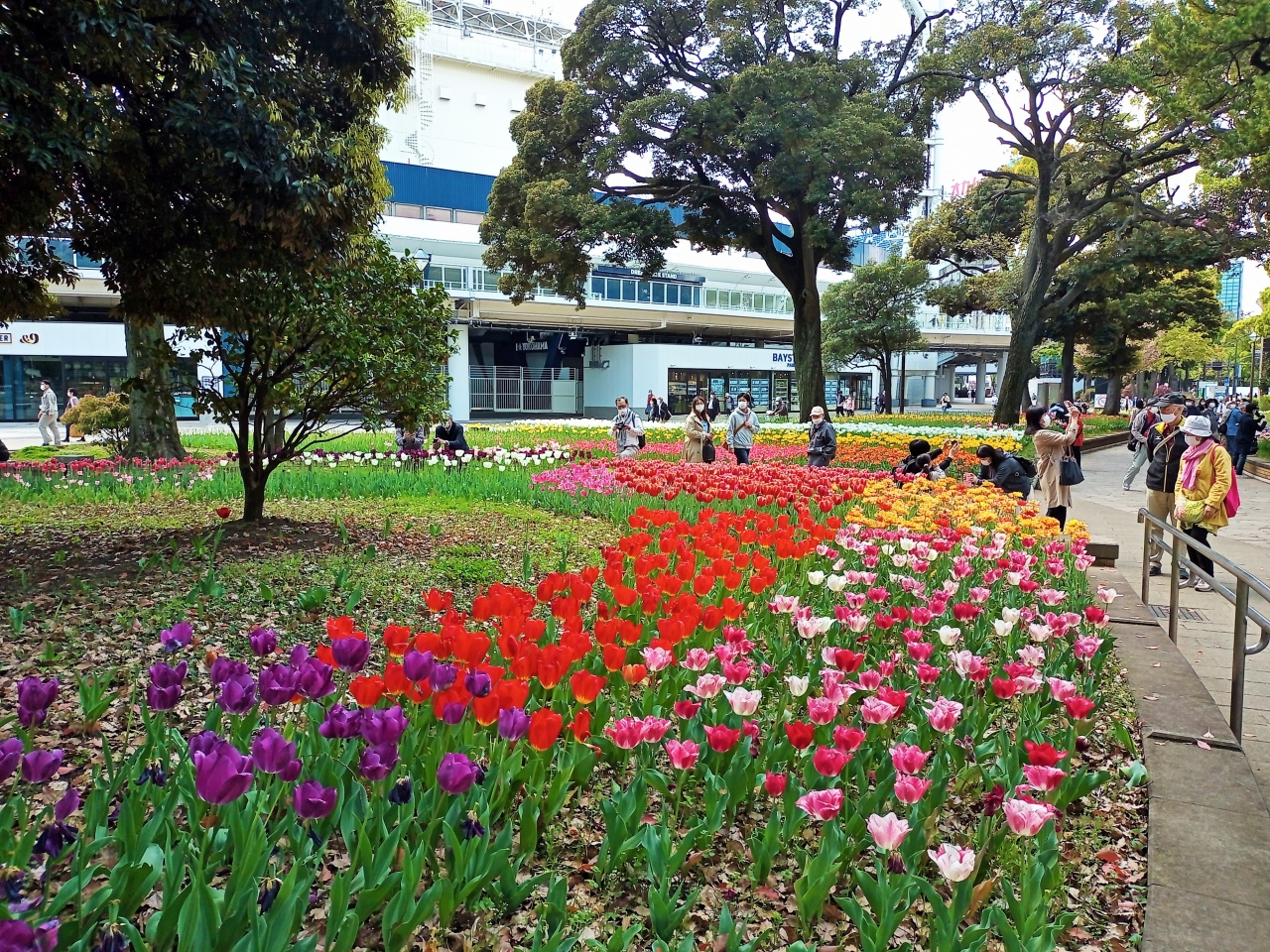 横浜市長が代わり、ガーデンネックレスというイベントを開催し、更にこの公園のチューリップが有名になったので、観光客が押し寄せてる感じ。