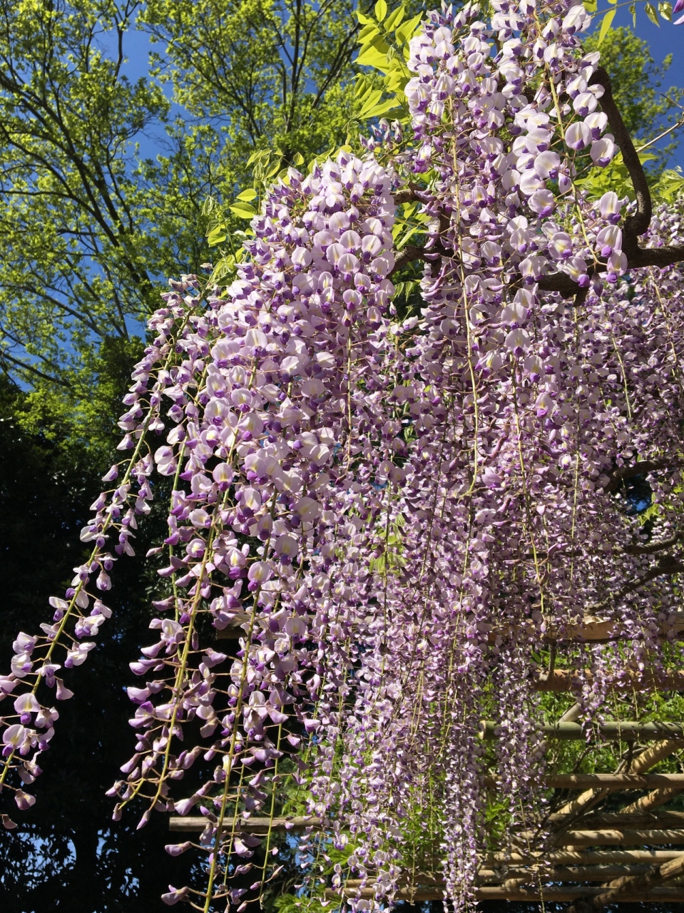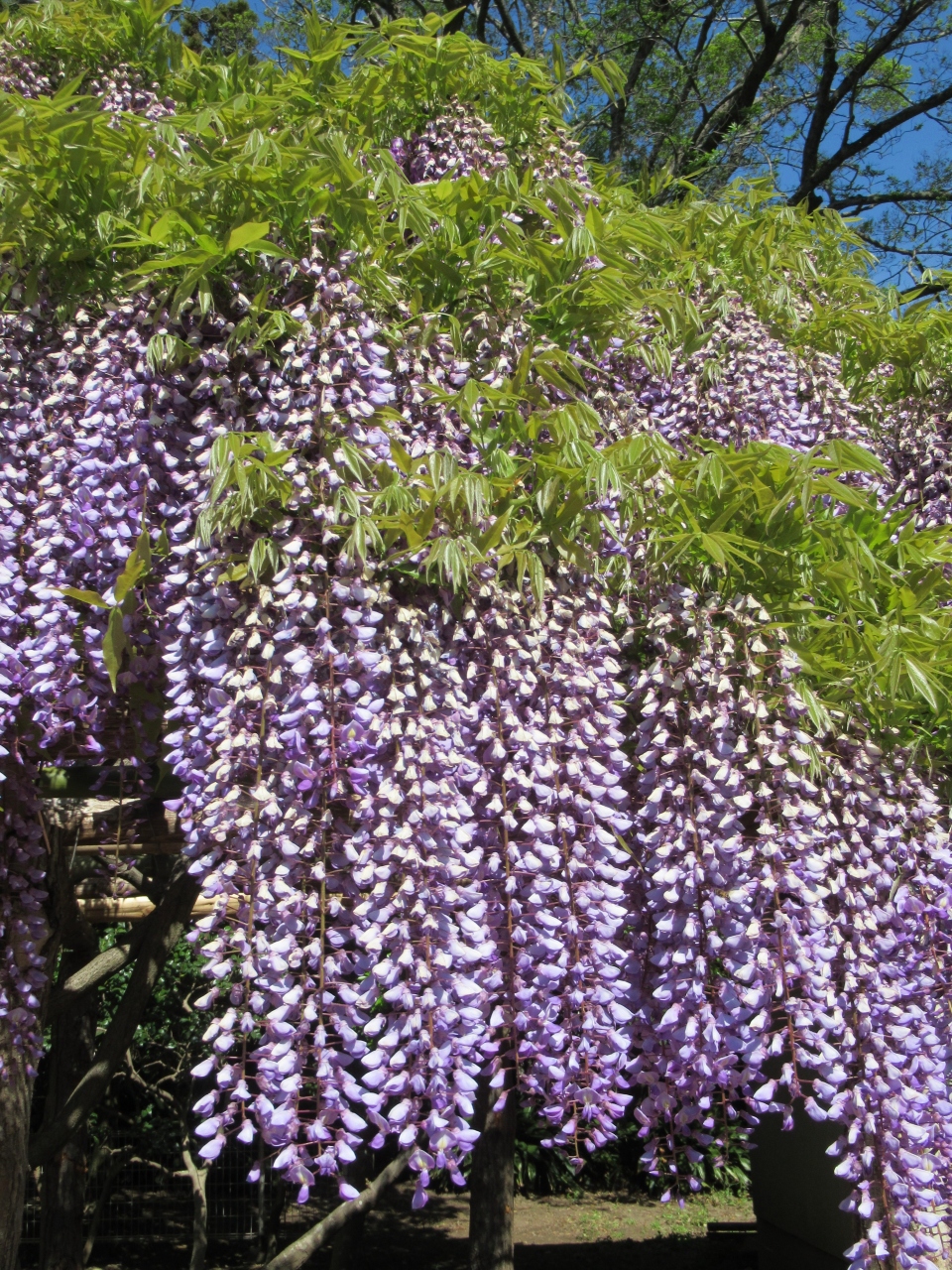 青空と新緑に包まれて爽やかに春風に花房を揺らしていました。