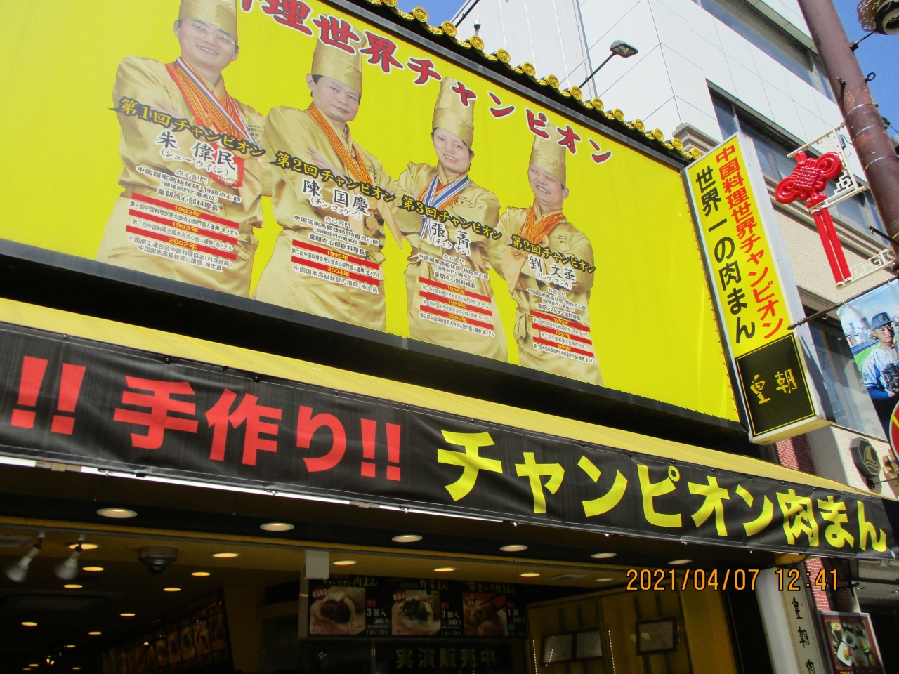 善隣門から中華街大通りを入ってすぐのところにありました。こちらが点心舗本店です。食べ歩きとお土産のお店で、イートインスペースもありました。チャンピオン肉まんが有名のようですが、私は大好きなエビニラまんをいただきました。