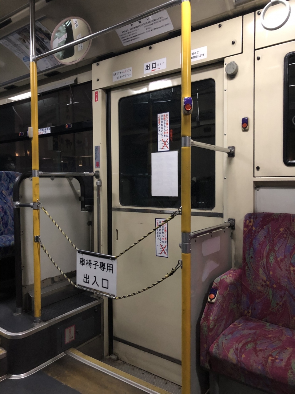 前乗り前降りの後払い方式で、他社からの譲渡された中央もしくは後ろに扉のある車両も、扉は閉鎖もしくはステップを塞いだ上で座席が設置されています(低床バスは、車椅子乗車口)。