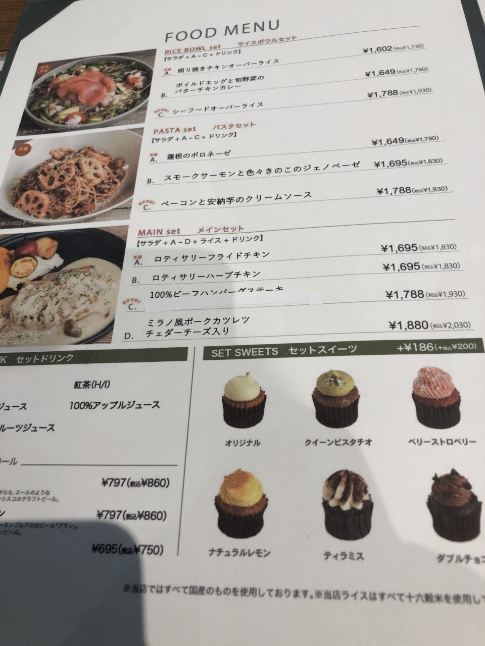 セットにすると、サラダ、ドリンクも付き、お得感があります。お洒落な食器や盛り付けで楽しめる雰囲気のお店です。