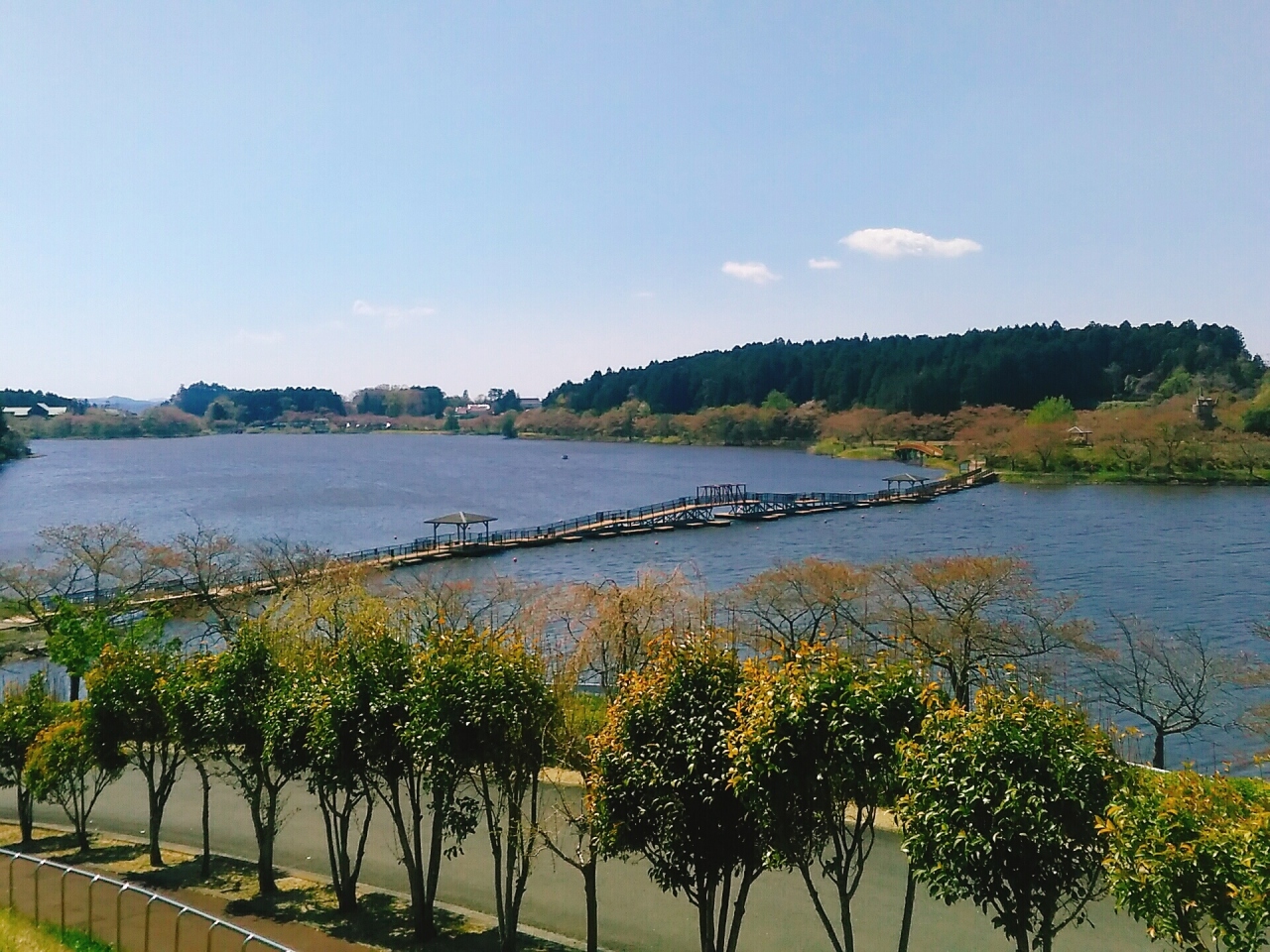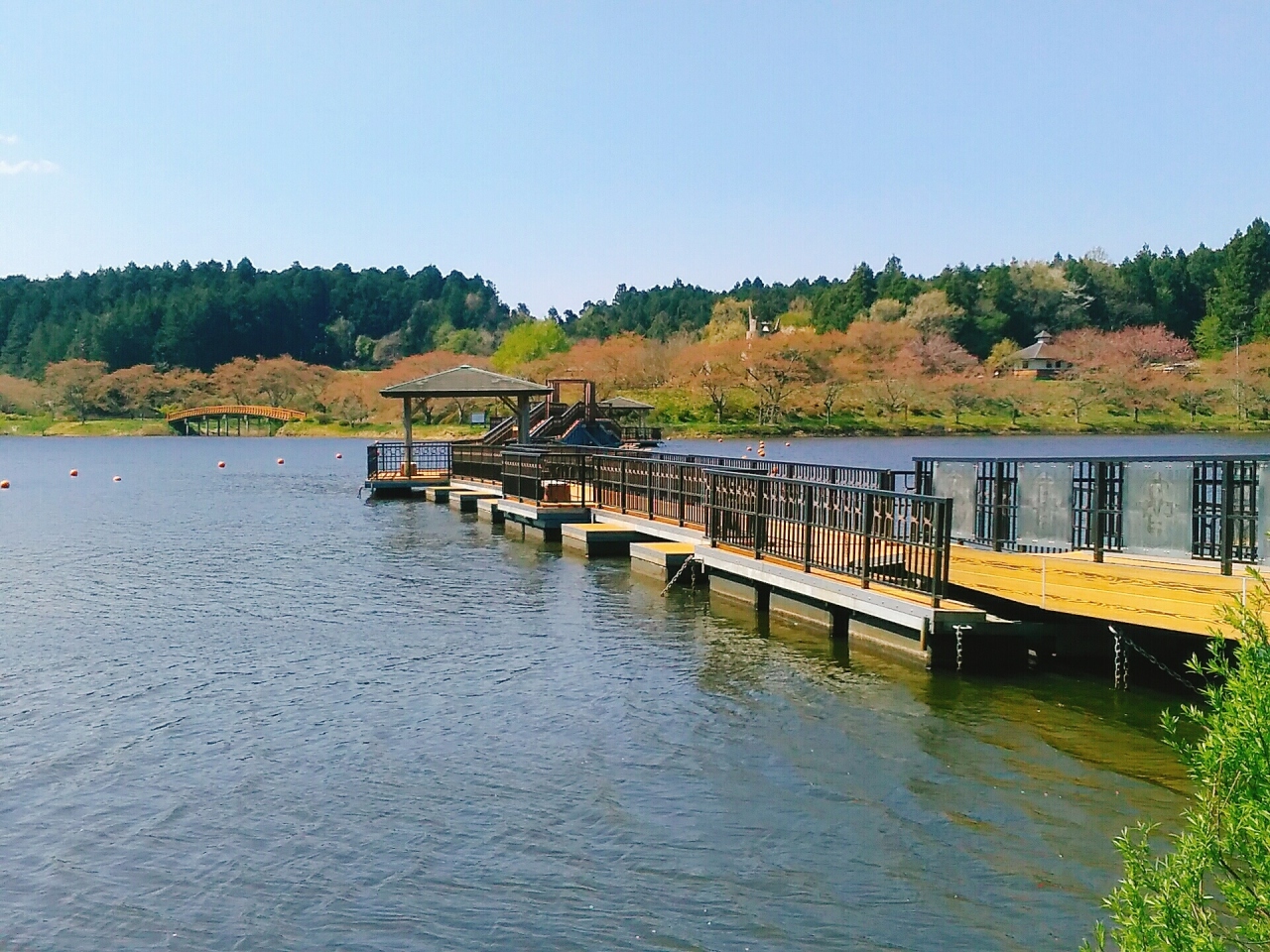 平筒沼を中心とした公園で、平筒沼は県内でも有数の釣り場としても知られていて、平日でも釣りを楽しんでいる人がいました。沼には188mの浮き桟橋あり、対岸に渡る事が出来ます。沼の周辺には桜500本以上が植えられており、春には花見、秋には紅葉を楽しむ事が出来ます。遊歩道も整備されており、一周3.8kmのウォーキングができます。