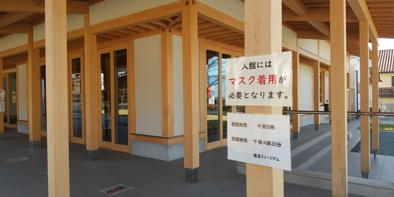 武田神社のすぐ目の前にある、観光施設です。そちらのほうにも数台分の駐車スペースがありますが、神社の前や周辺にも駐車場はあるので、車での来館も安心。バス停もすぐ近くです。