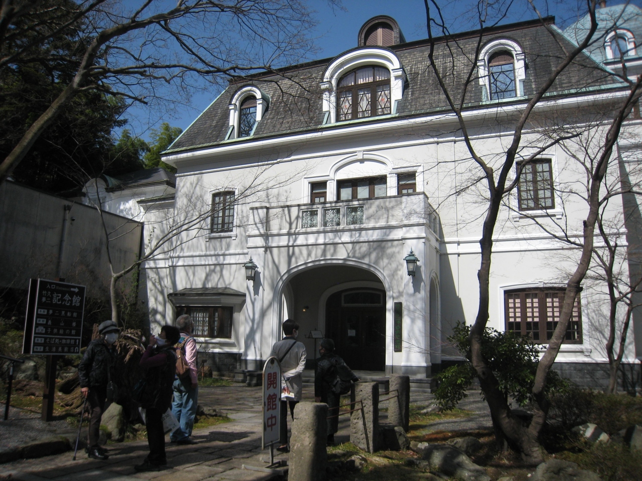 かなり広い森の中に建物が点々と建っている。一番奥にあるのは新館 義山楼で木造の日本家屋で展示品は和ガラスが展示されている。本館 大正ロマンの館は伊香保にゆかりの品々や夢二の子供絵、商業デザイン、スケッチ帳など。夢二 黒船館は夢二の作品が展示されています。全部見るとかなりの時間を要するのでチケットを買う時に窓口で相談すると良い。