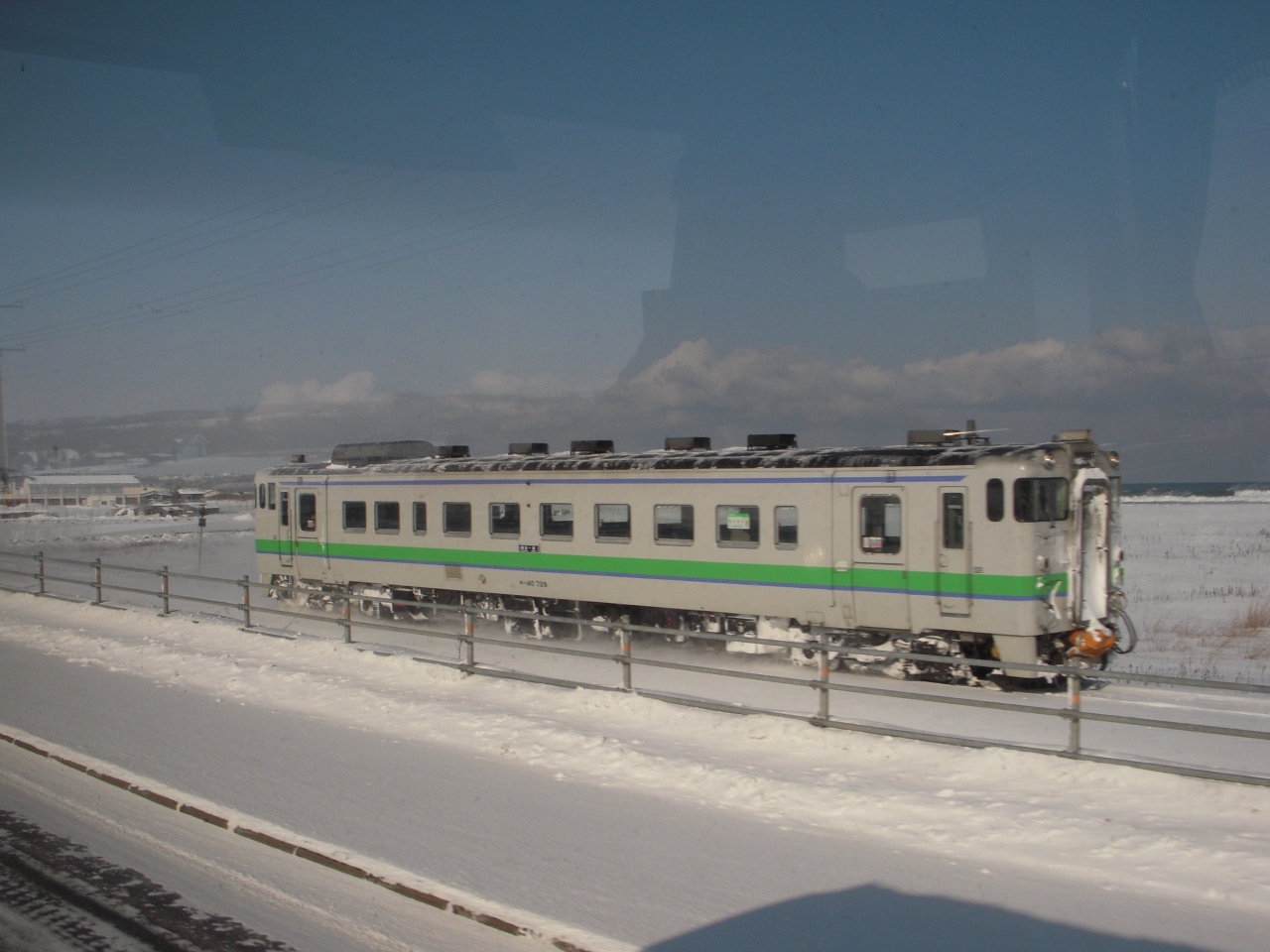 オホーツク海と並行して走っている釧網本線の藻琴駅