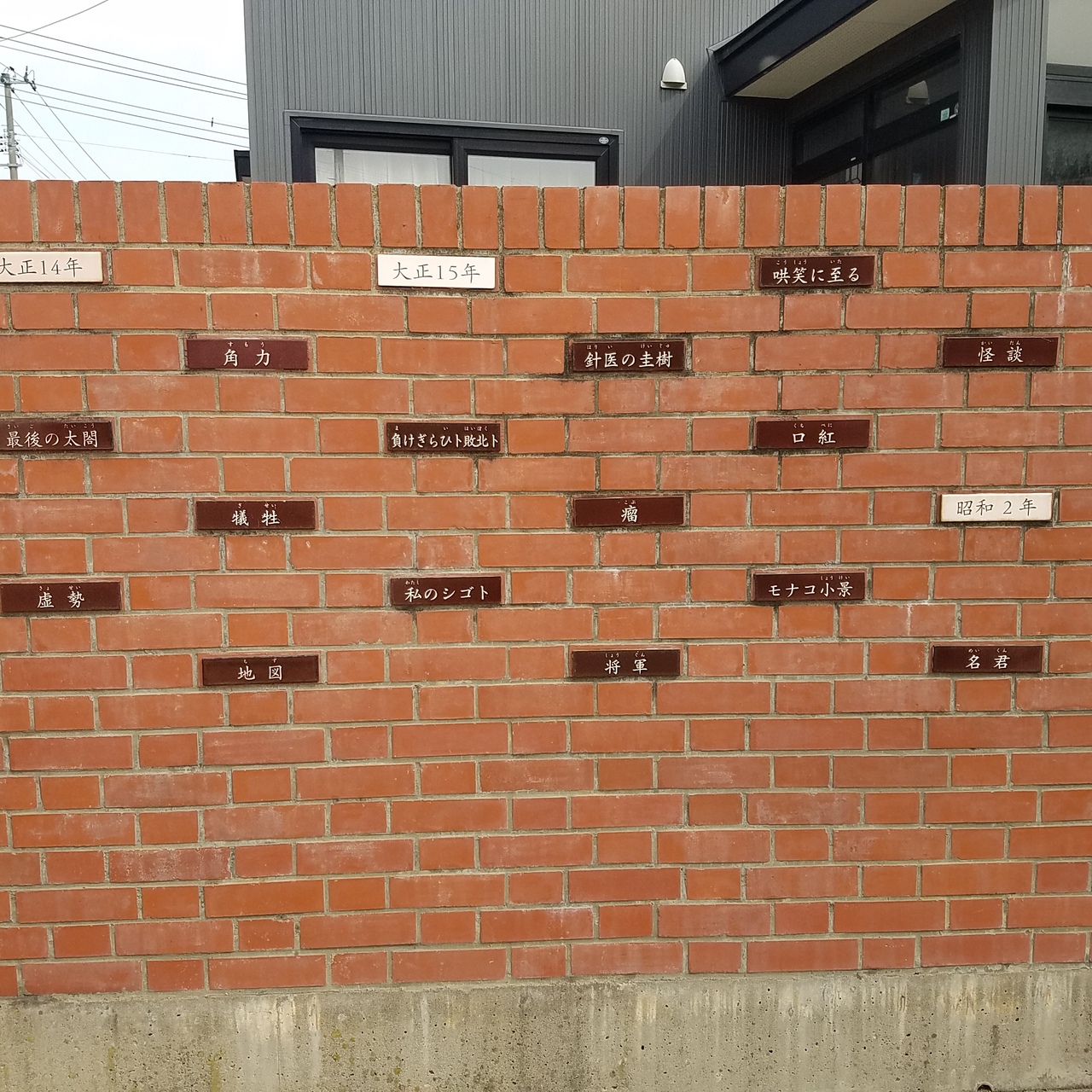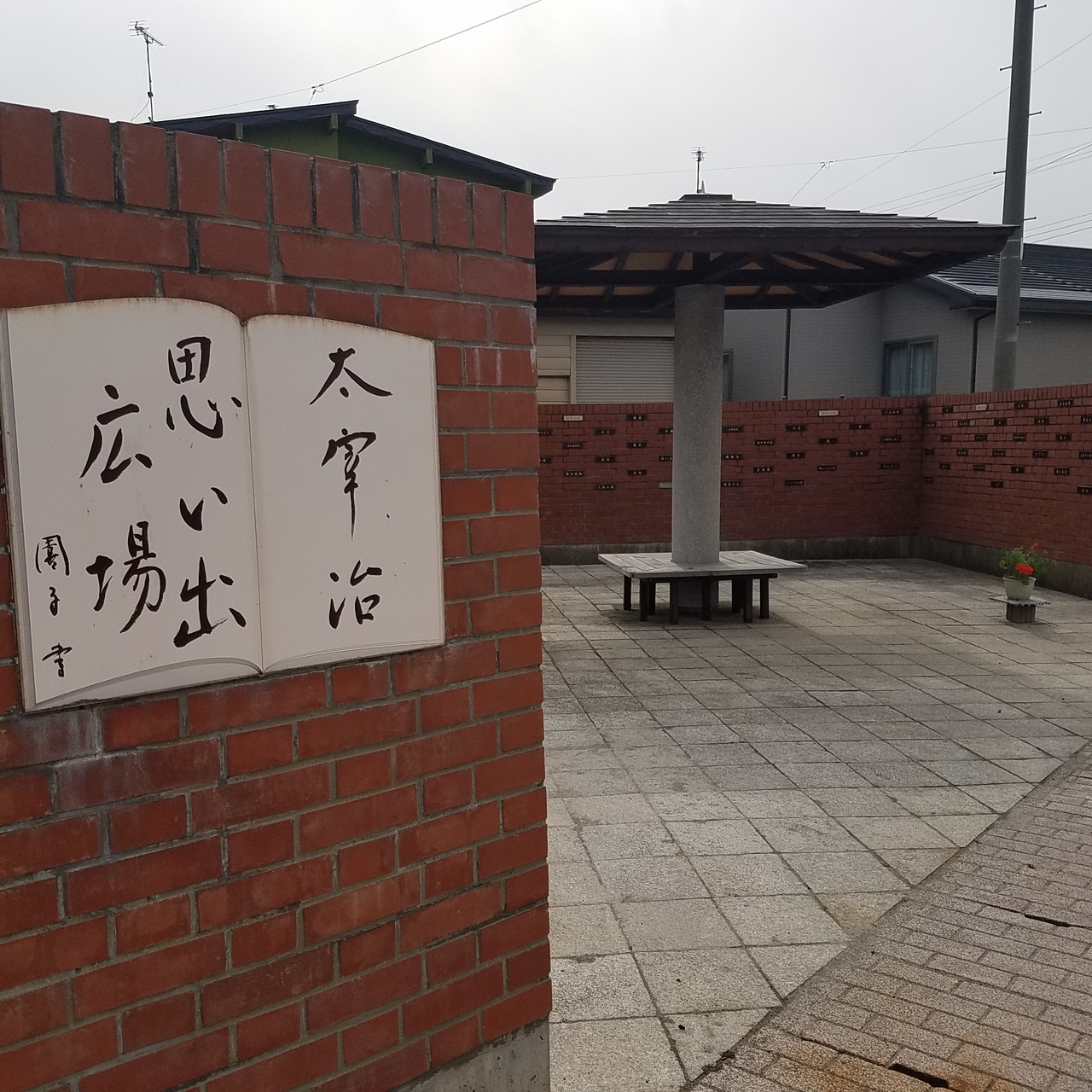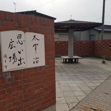 太宰治執筆の本のタイトルがレンガに埋め込んであります。