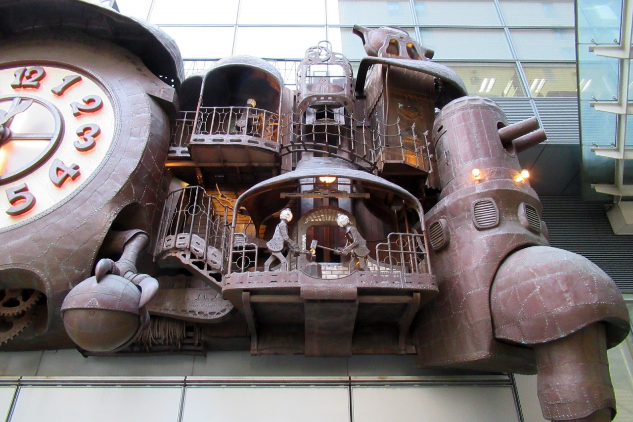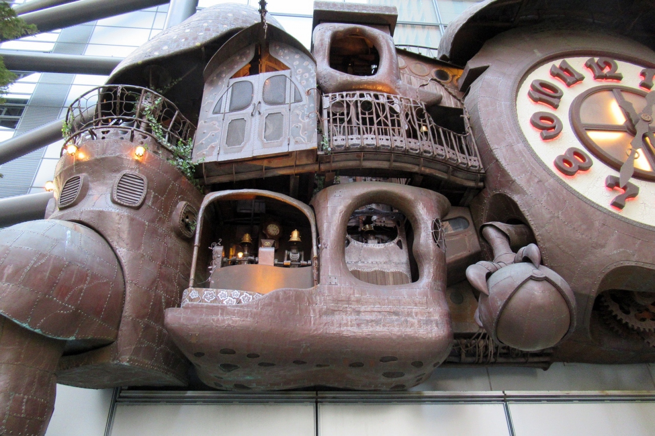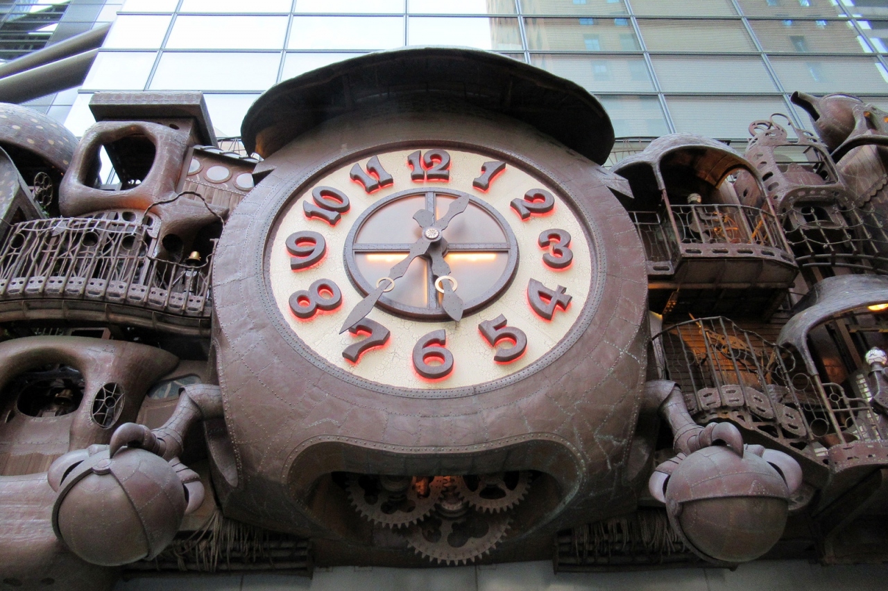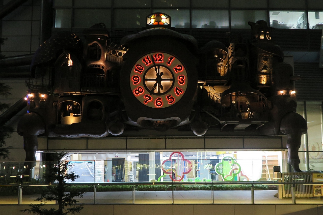 宿泊していた「ザ・ロイヤルパークホテルアイコニック東京汐留」の目の前は「日本テレビタワー」、その一角に設置されている「日テレ大時計」です。宮崎駿デザインの巨大なカラクリ時計を建設・維持できているのは、さすが財力のある日本テレビです。まさしく無駄の効用、マスメディアとしての本領発揮、日本の豊かさを改めて感じられますね。