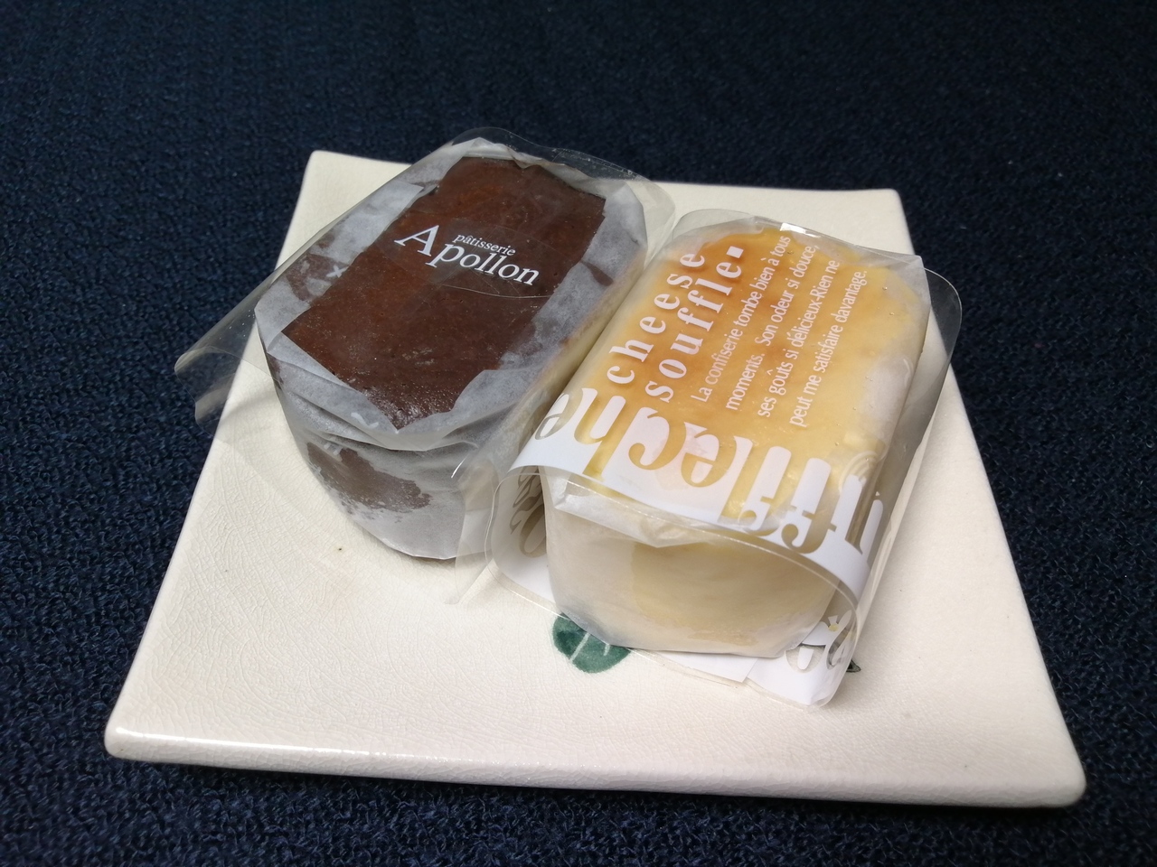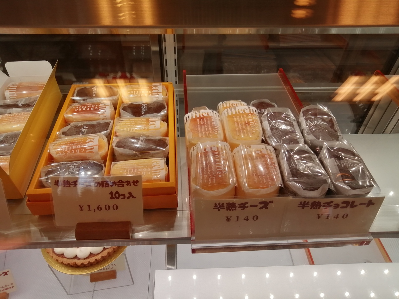 その昔、この店の前を何度も通り過ぎたことはありましたが、今回初めて店内へ。ケーキや焼き菓子などとても種類が多くなかなか選べない…。目にとまったのはかわいらしいサイズの「半熟チーズ」。お値段も手頃な税込140円。ついでに隣りにあった“兄弟”?の「半熟チョコレート」も買っときました。