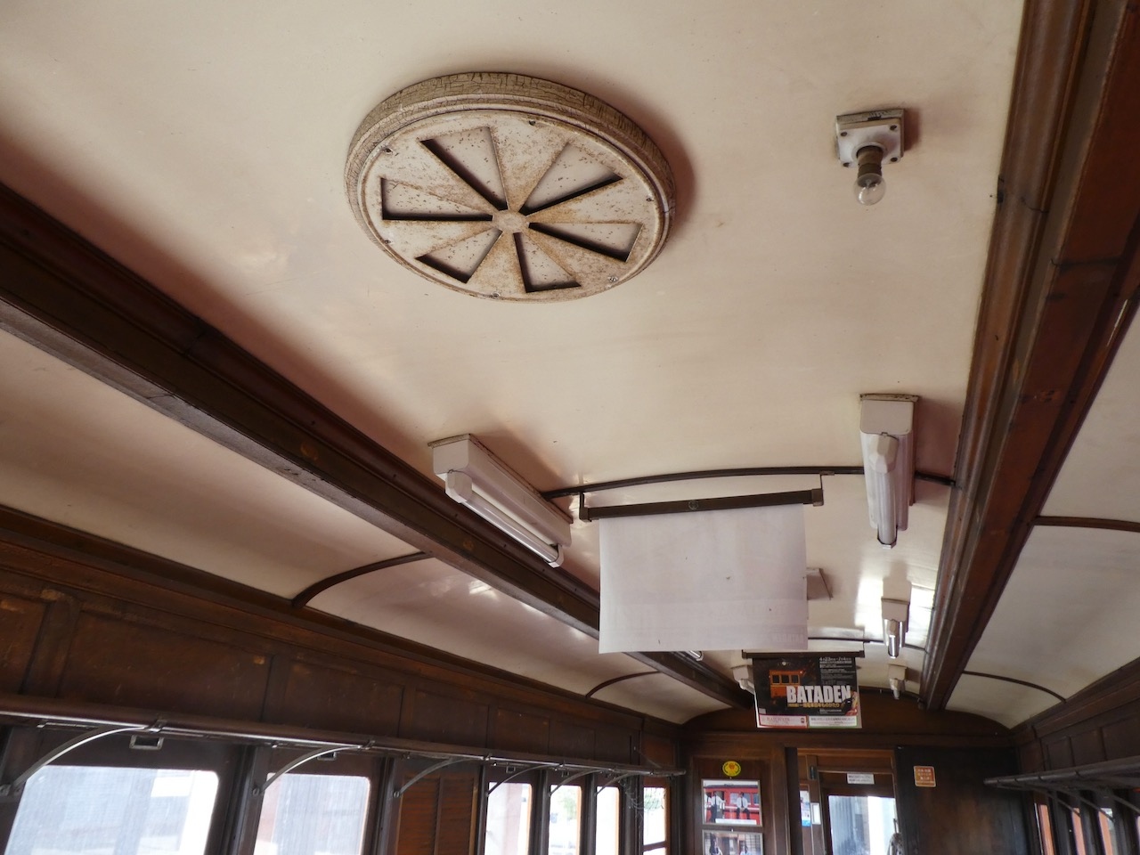 ニス塗り車内の手動ドア、吊りかけ駆動の旧型電車が出雲大社前駅の横に保存・公開されています。入場料なしでも入れて車内も見ることができます。古いけど暖かな配色が心地よいです。運転台が狭かったり、天井の蛍光灯がすごく少なかったり、見るべきところはいっぱい。鉄道好きなら10分くらいはあっという間でしょう。