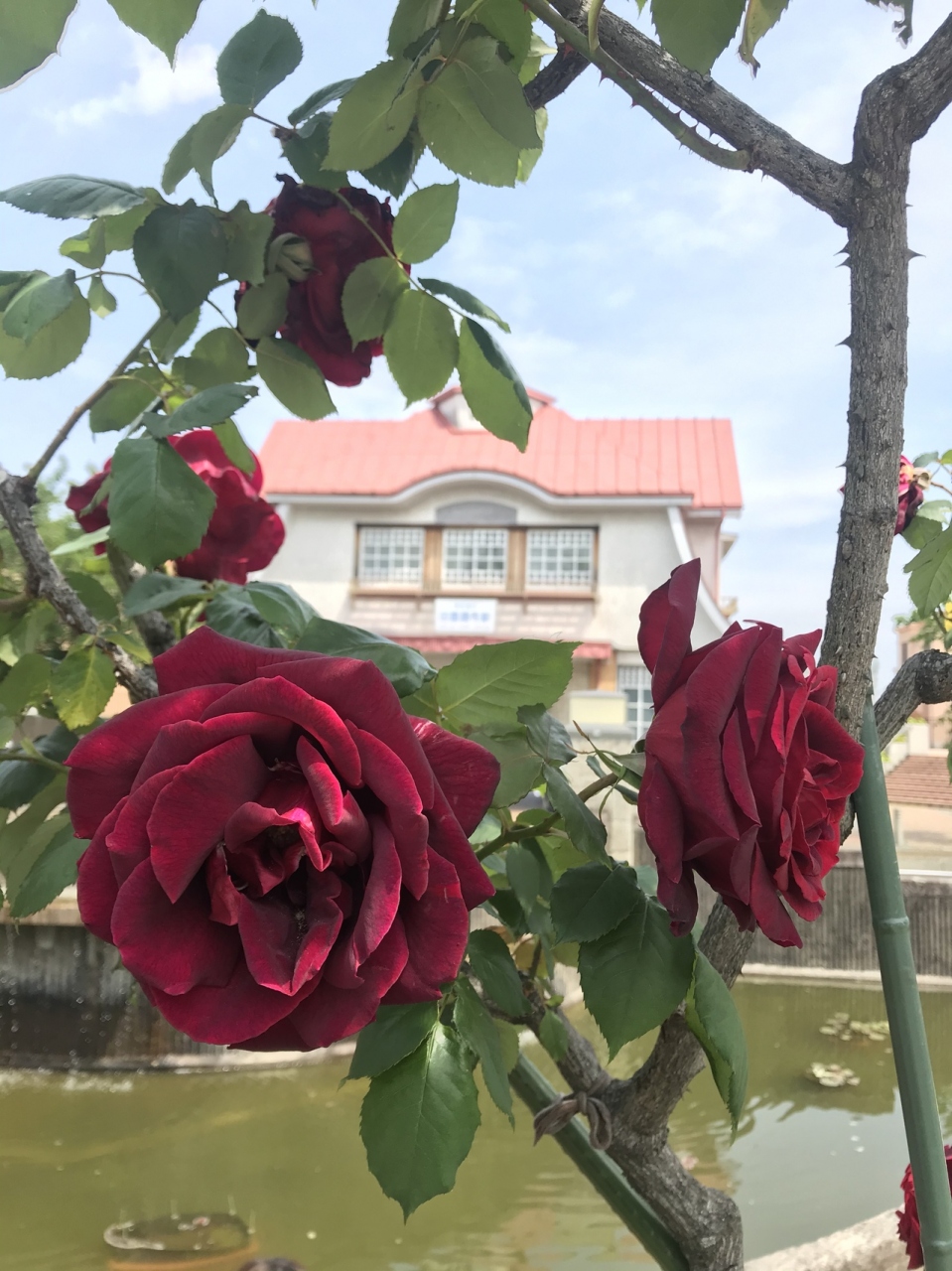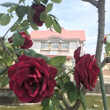 田園調布駅の西口駅前広場、池の周りには、地元の方が手入れされているバラの木があります。真紅の大輪や、スプレー咲きの薄いピンク、中位の大きさの黄色など、色とりどりの美しいバラか咲き、皆を楽しませています。