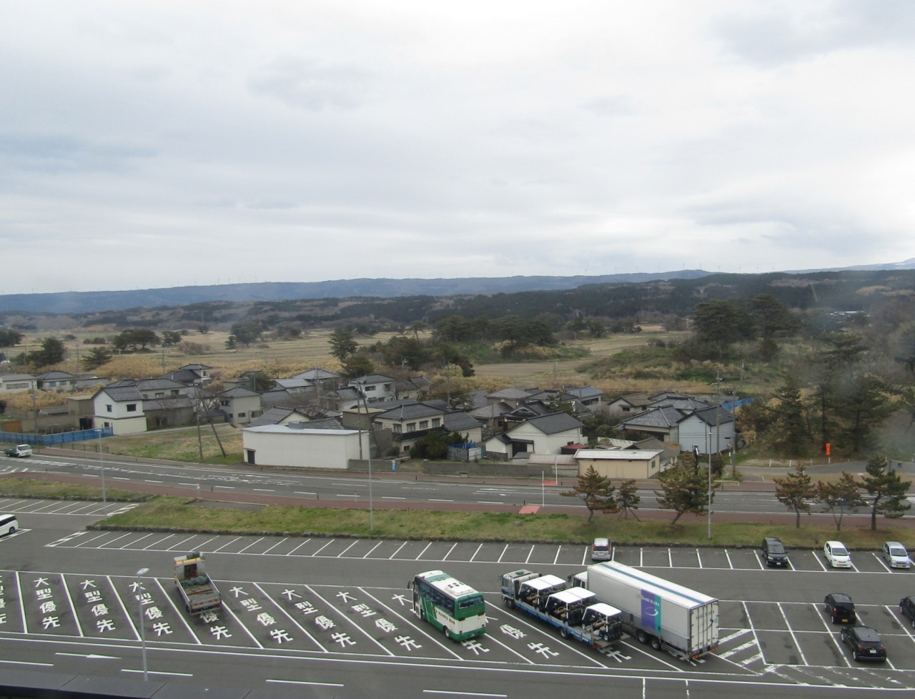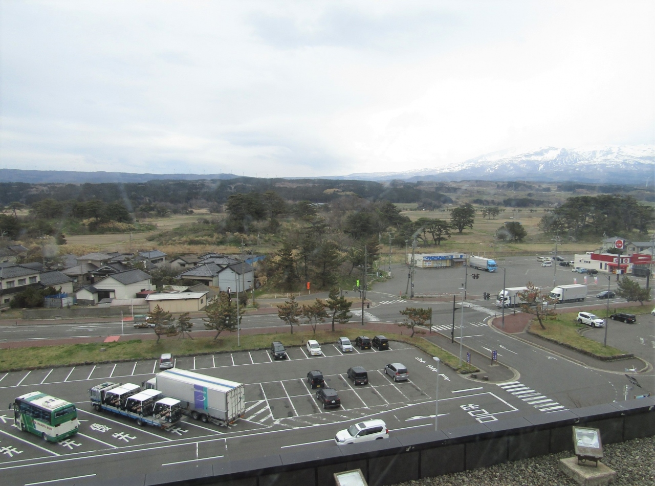 - 国道7号線沿いにある道の駅象潟の展望台から