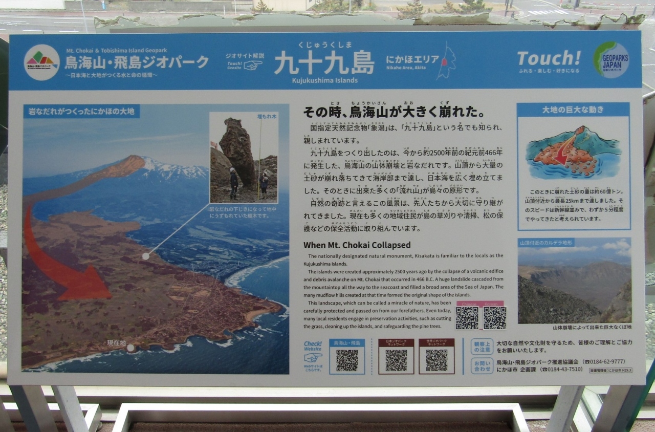 道路など平地ではその姿はわからず、道の駅・ねむの丘象潟にある無料展望台に上ると少しわかりますが、周辺ではここが一番高い所と思います。