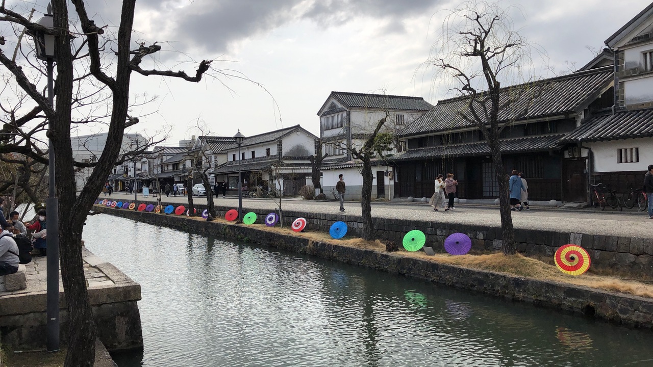 2~3月に行われるライトアップイベントです。ふだんから、美観地区を中心に、夜間照明によるライトアップが行われていますが、春宵あかりでは、さらにライトアップが追加されます。2021年は、倉敷川沿いで和傘によるライトアップ、いくつかの店の障子を使ったアニメーション放映など、ユニークなものが多かったです。