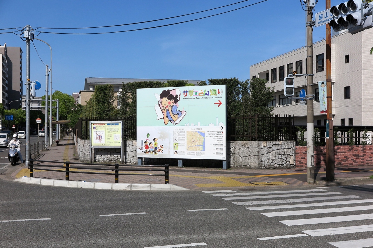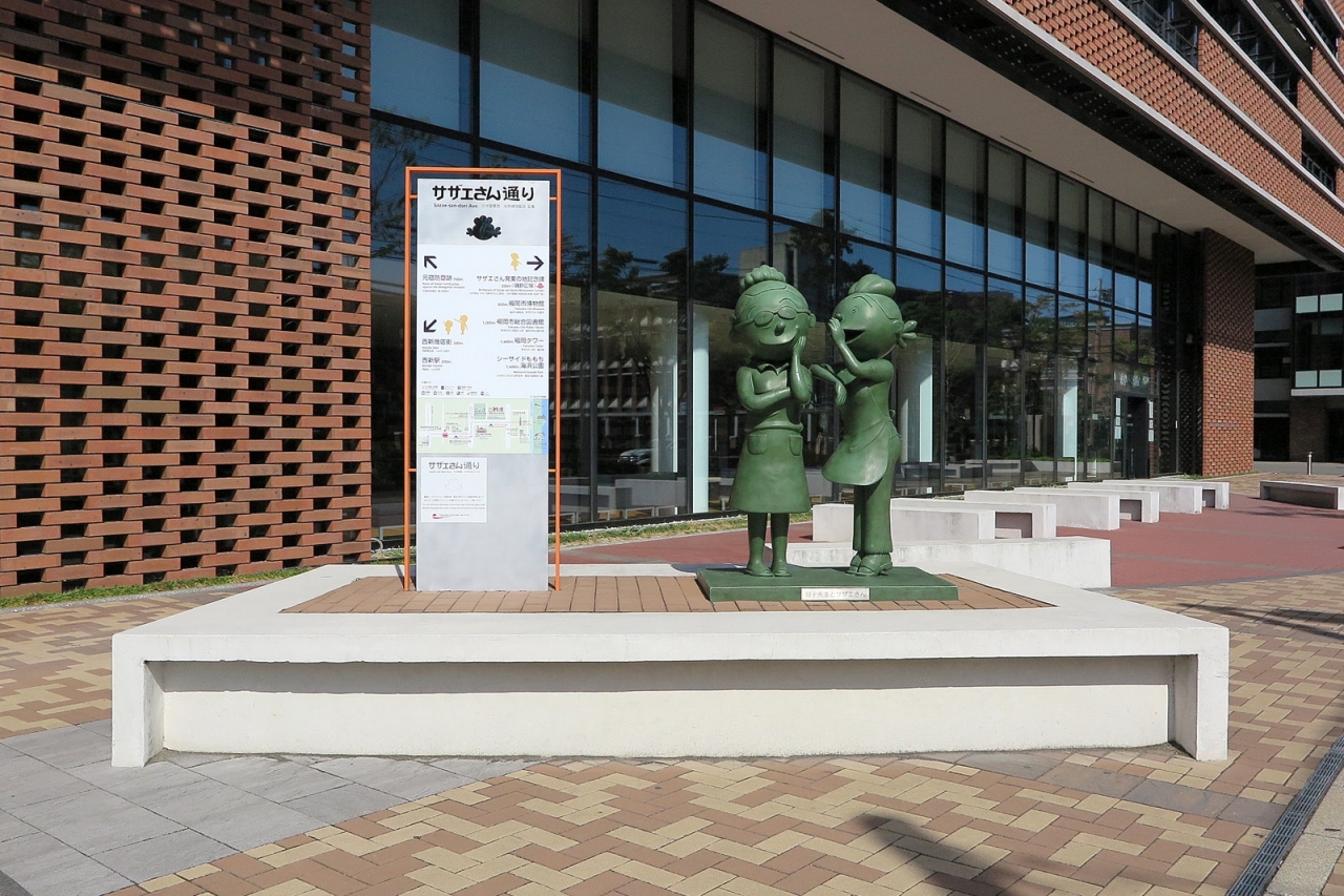 - 「町子先生とサザエさん」の像と「磯野広場」を楽しみました