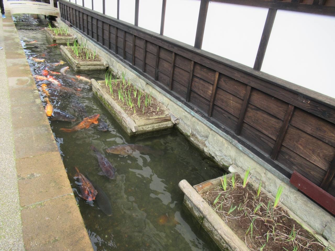水路に美しい鯉が泳ぐ