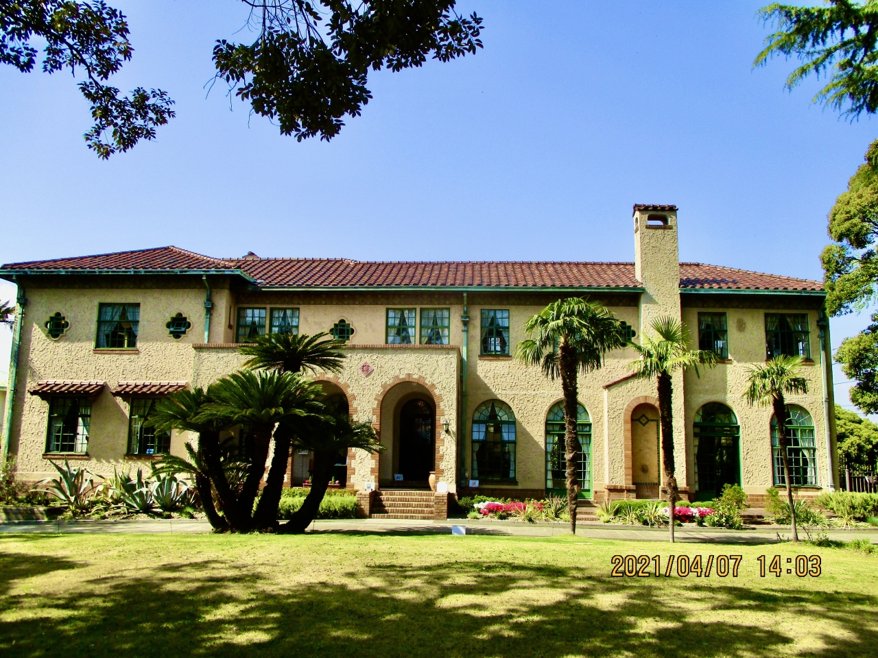 元町公園の中にあり、山手西洋館の中でも一番大きかったです。イギリス人貿易商の邸宅として、1930年に建てられたそうです。港の見える丘公園の山手111番館と同じ方が設計していて、スパニッシュスタイルを基調としています。