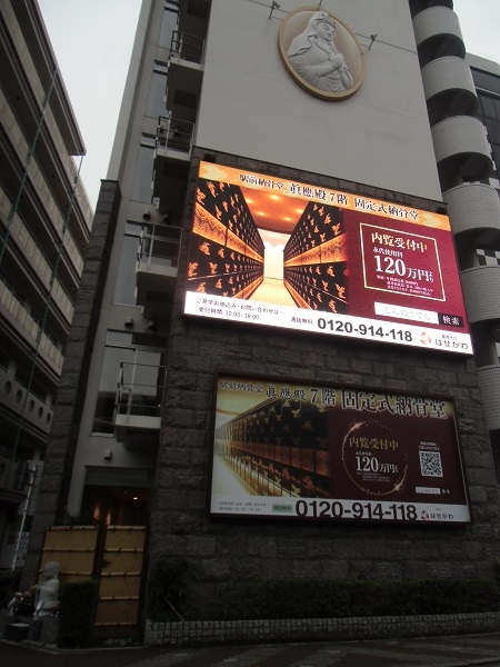 駅から見える場所に電飾の、納骨堂の大きな宣伝看板があり、今の経営者はやり手なんだろうなと思ってしまいました。