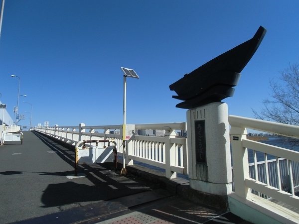 現在では、川崎側に渡船跡の碑と、明治天皇六郷渡御碑が建ち、欄干に渡船のモニュメントがあります。