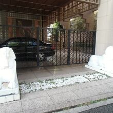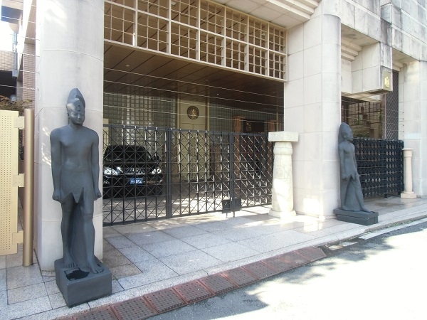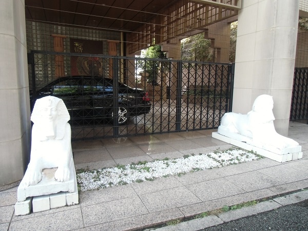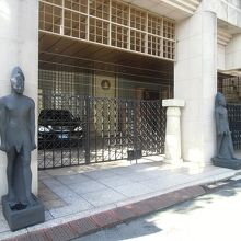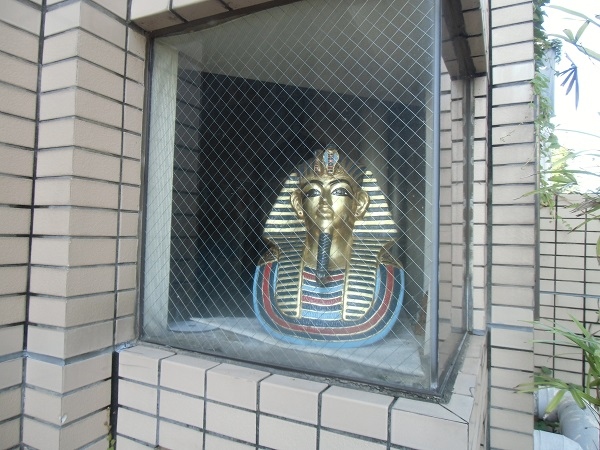 入口前にはいかにもエジプトといったかんじの人物像やスフィンクスの像が飾られています。