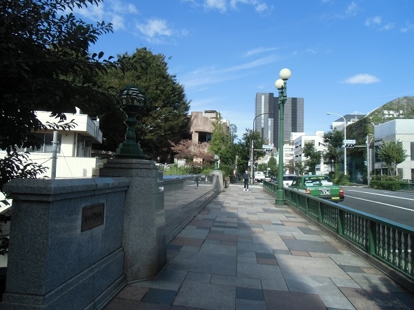 現在は橋の下を車道が通っていますが、かつてはここを三田用水が渡るための水道橋でした。