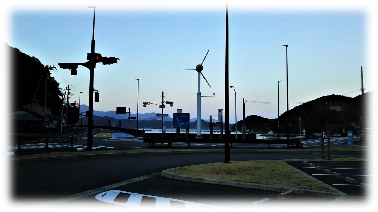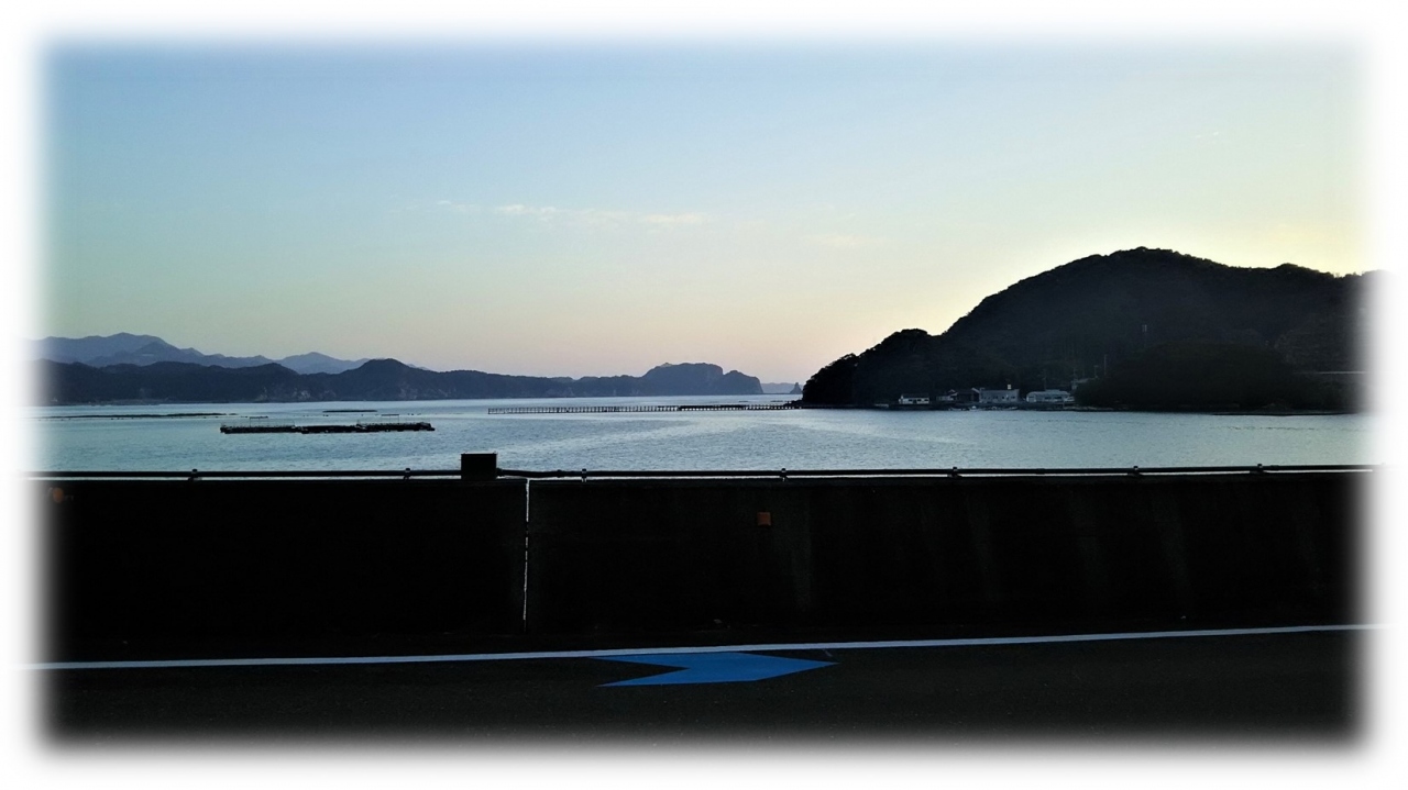 道の駅の夜明け、日の出は半島の影となりそうだ。