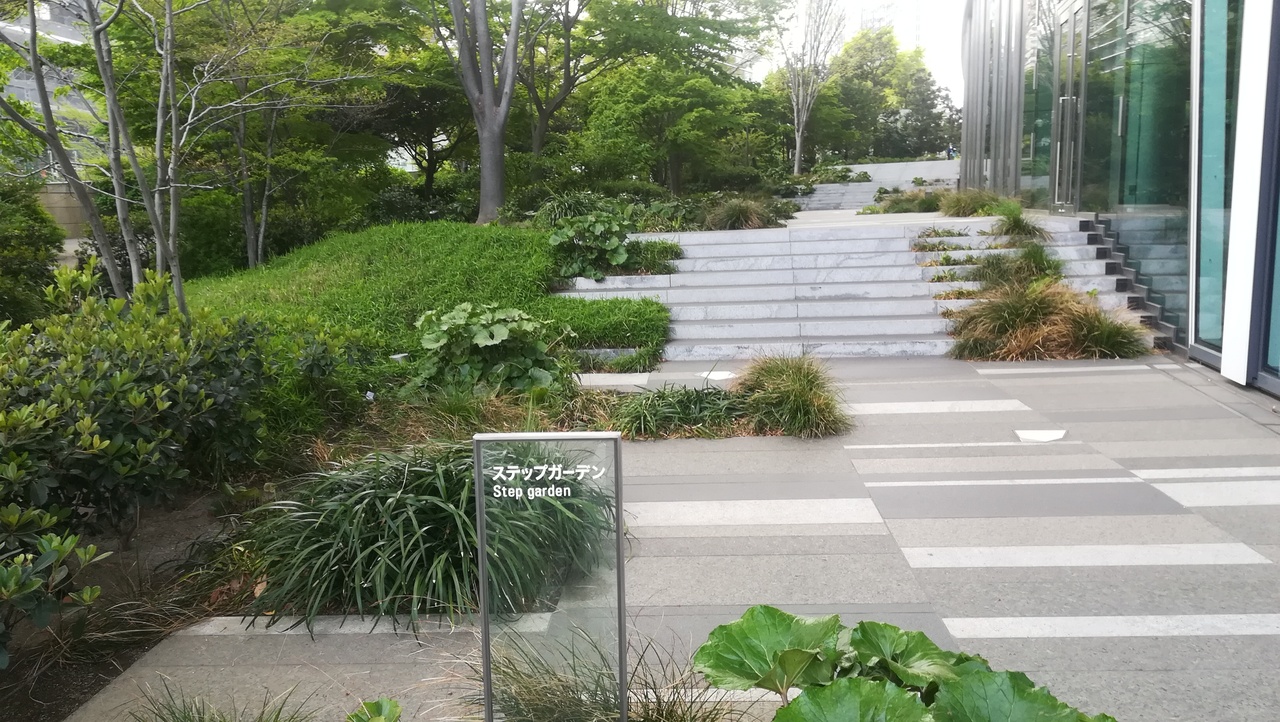 遠くからでも森タワーがひと目て分かります。一階からエスカレーターで上がりますと、中庭がありますが、今の時期には本当に良いですね。
