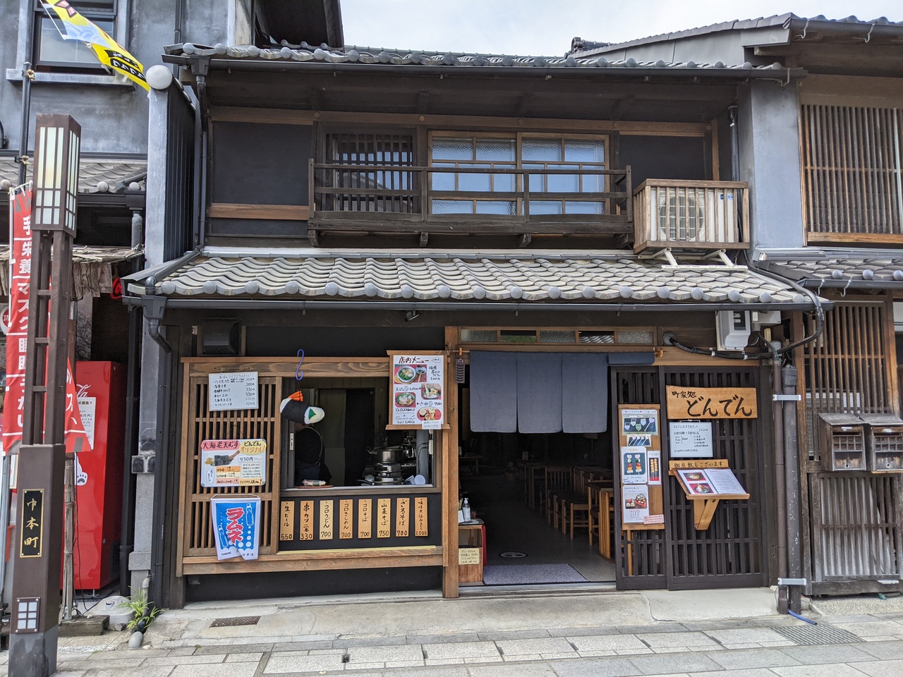 犬山駅から犬山城に行く途中の本町通り沿いにあるお店です。町並みの雰囲気と調和したレトロな雰囲気の建物は風情があって良かったです。味噌煮込みうどんやきしめんなど食事メニューもありましたが、ハート型のモナカアイスなどかわいいスイーツを食べることもできるので休憩などにもオススメです。