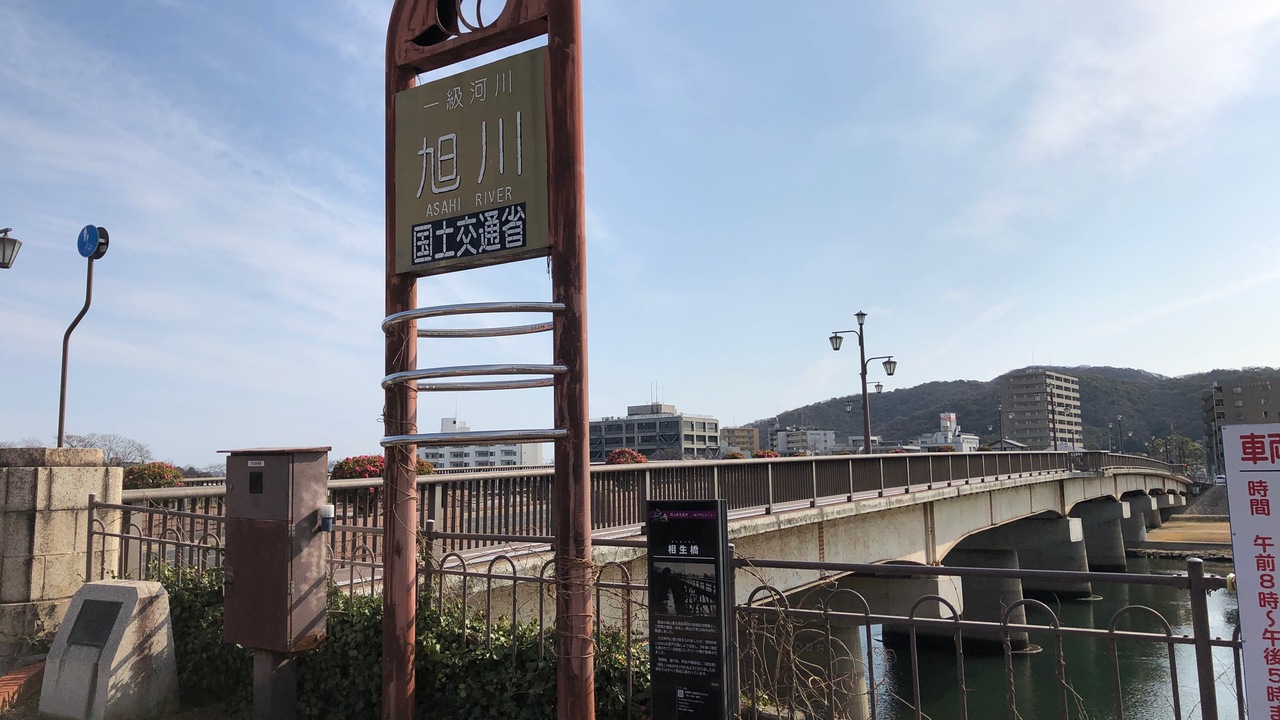 吉井川・高梁川とともに、岡山三大河川の一つです。「あさひがわ」と濁って読みます。岡山市内では、岡山城や後楽園など、観光スポット沿いを流れ、桜の名所として有名です。また、京橋近くの河川敷では、毎月第1日曜日に、朝市が開かれます。
