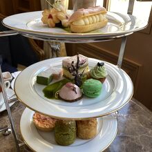 運ばれてきた3段アフタヌーンティーは、可愛らしくデコレーションされた洋菓子が並んでいて、美味しく楽しめました。意外とお腹いっぱいになります。