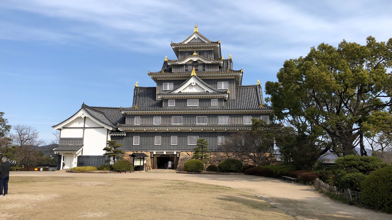 岡山城は、別名・烏城と呼ばれます。それは、天守閣が黒いからです。城内の建物は、戦災で無くなってしまいましたが、天守閣は戦後に再建されました。現在の天守閣内部は、博物館のようになっています。最上階からは、岡山市街地を眺めることができます。